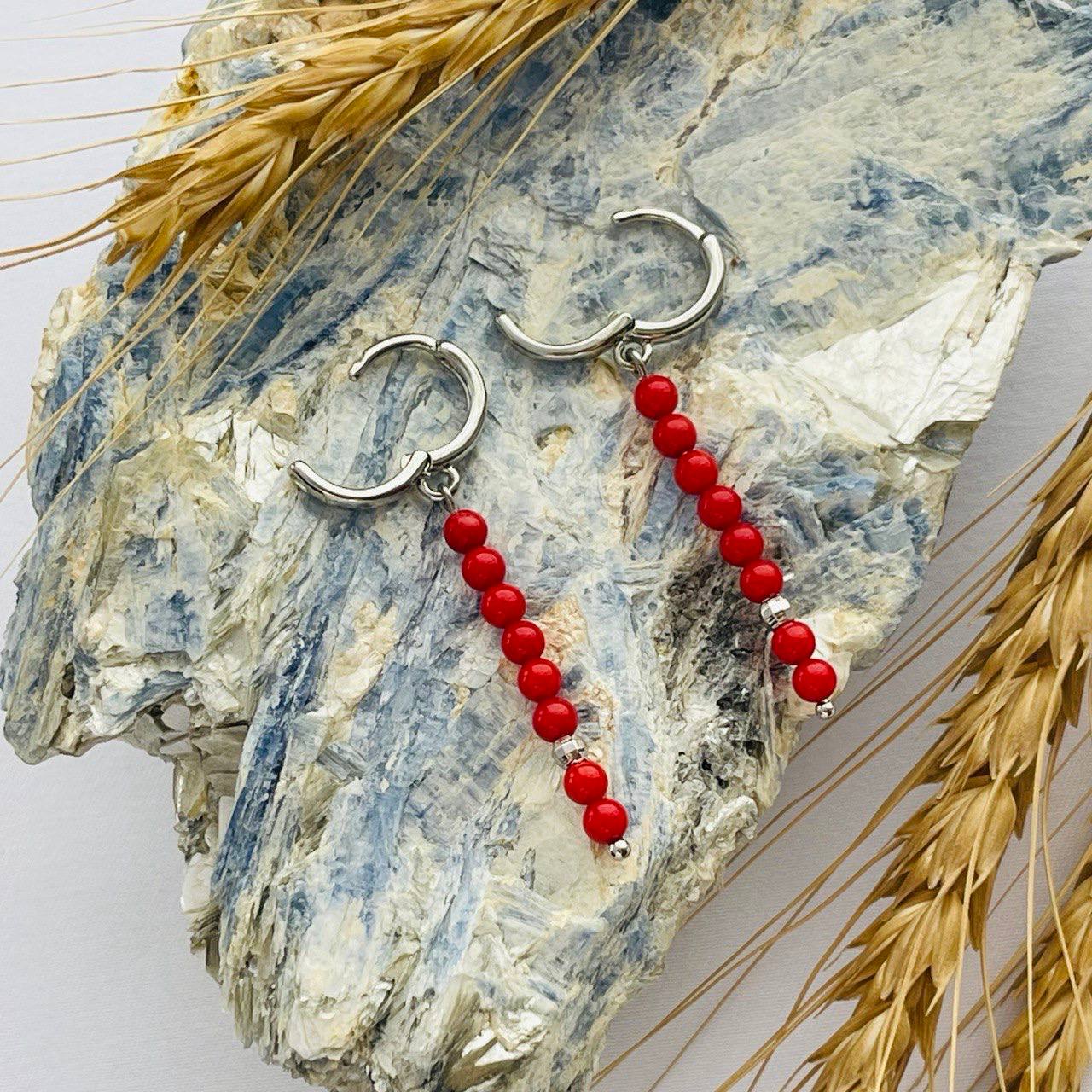 Радуга Самоцветов Серьги длинные из красного Коралла