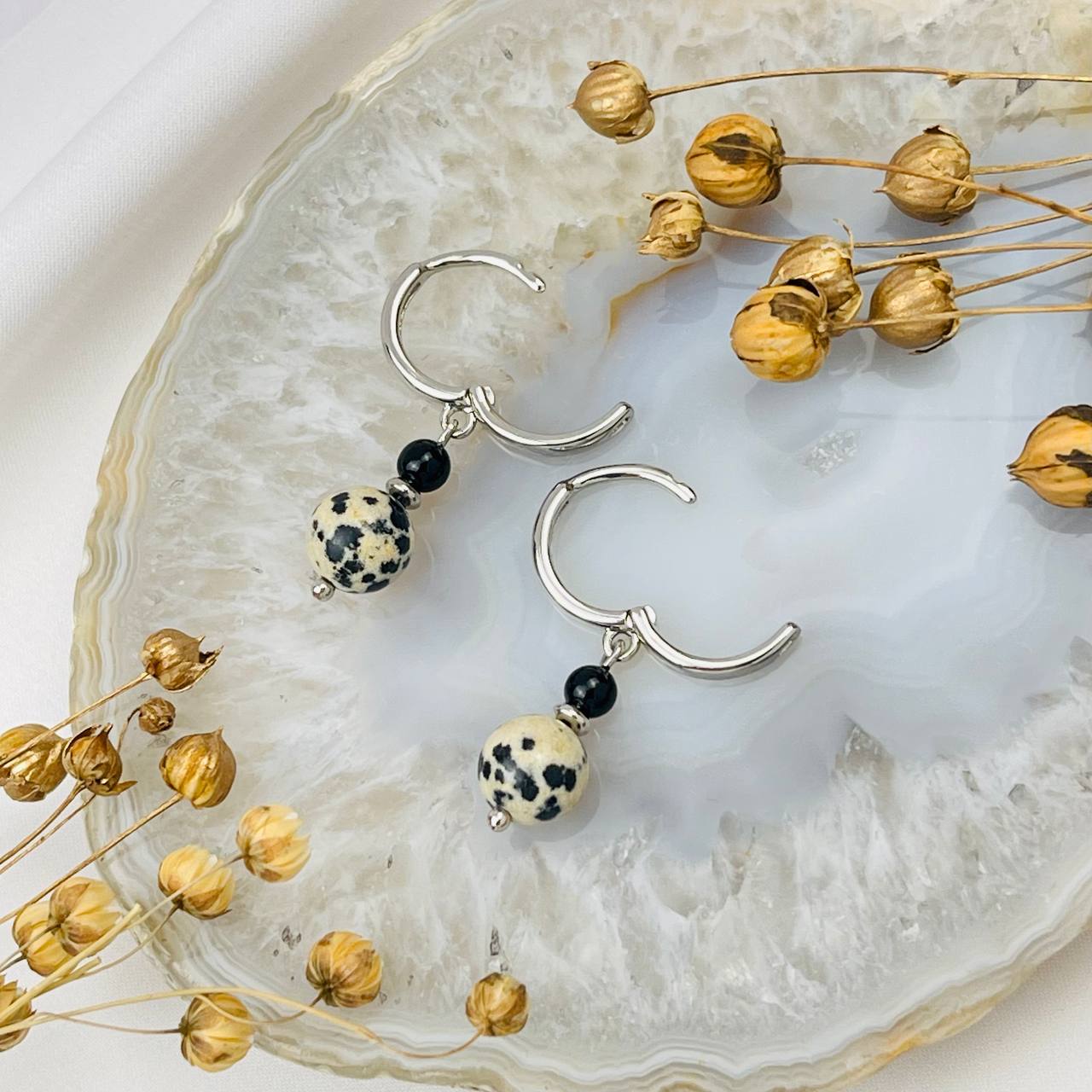 Радуга Самоцветов Серьги двойные из перепелиной Яшмы и Агата