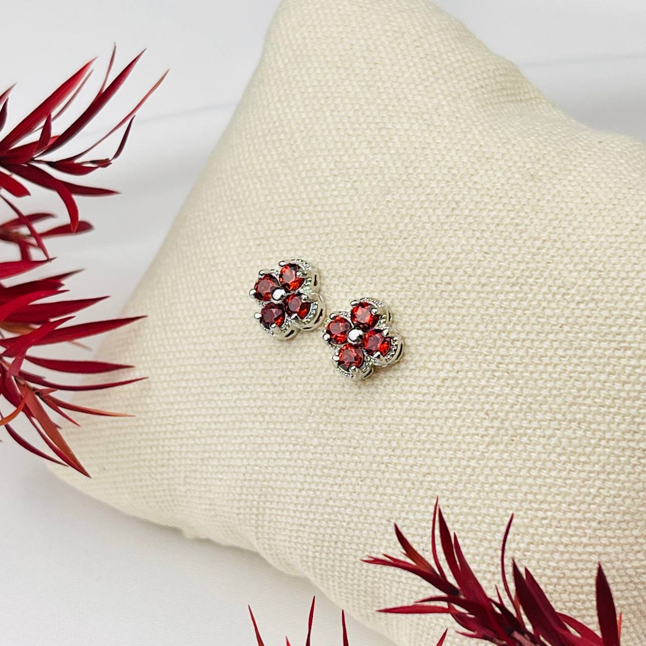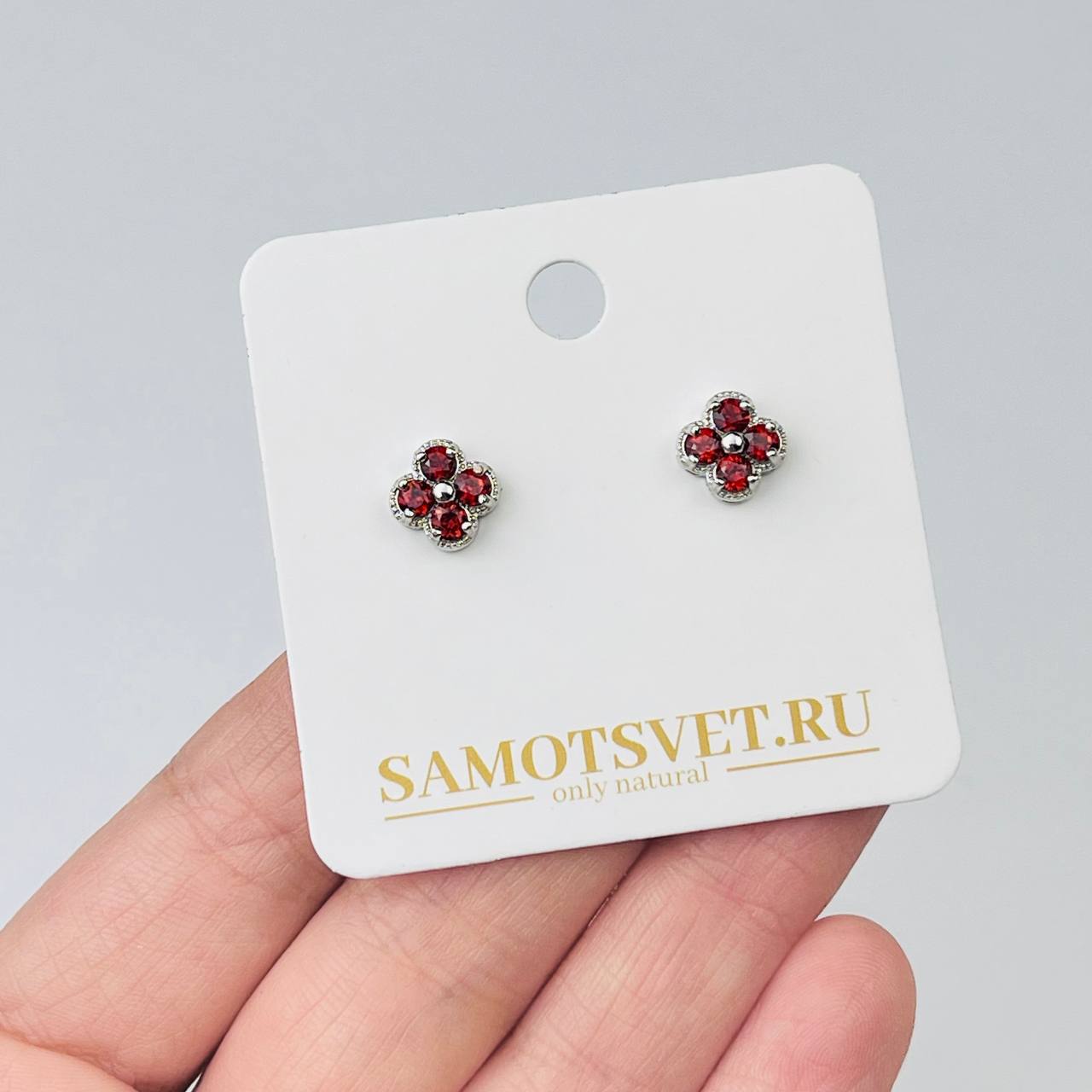 Цвет камня: Гранатовый Месторожде..показатьние: Индия Камень: Гранат Покрытие: Серебро (покр) Поверхность: Граненый Размер: 8х8 мм Тип швензы: Гвоздикиние: Индия