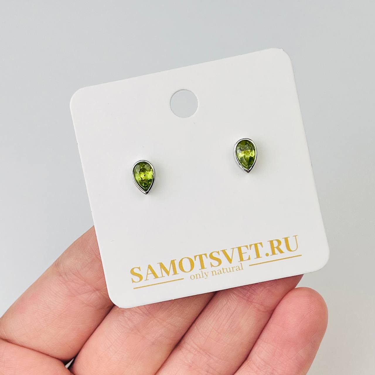 Радуга Самоцветов Серьги-пусеты с Хризолитом