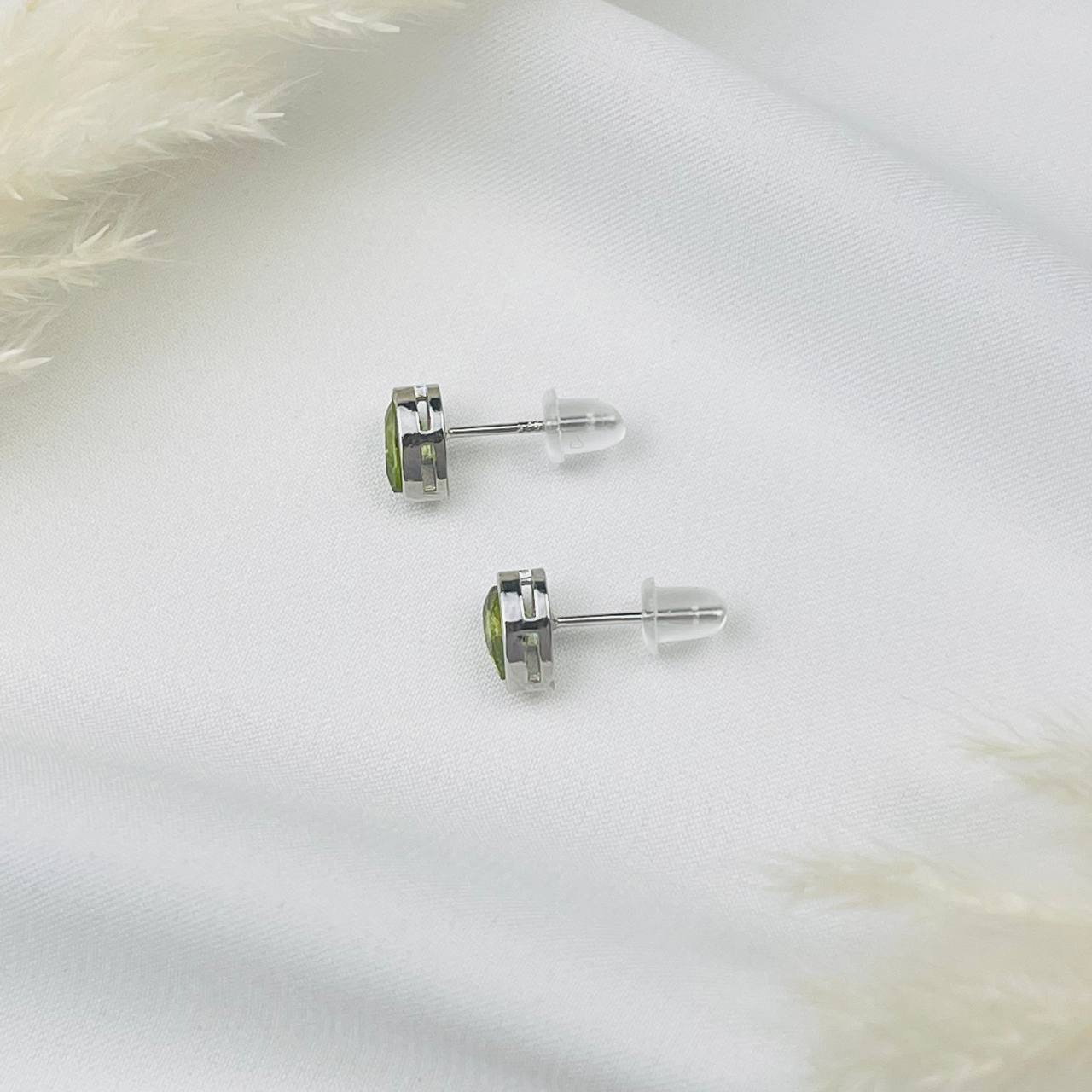 Цвет камня: Зелёный Месторождение..показать: США Камень: Хризолит Покрытие: Серебро (покр) Поверхность: Граненый Размер: 5х7 мм Тип швензы: Гвоздики: США