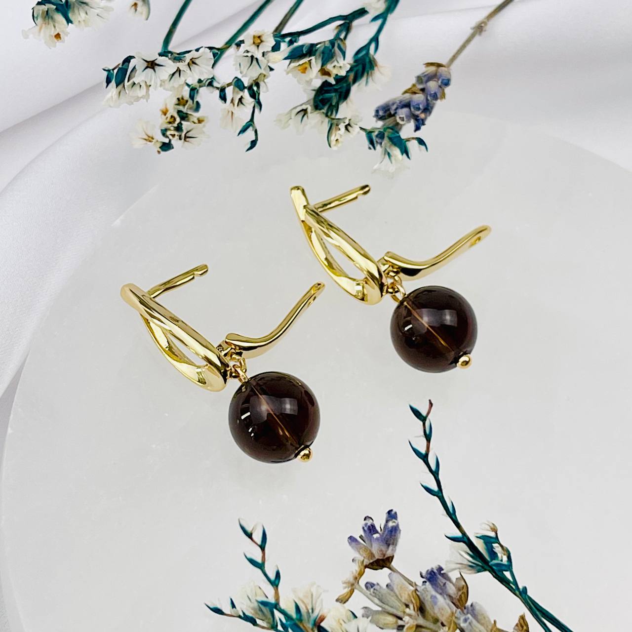 Цвет камня: Коричневый Месторожде..показатьние: Бразилия Камень: Раухтопаз Покрытие: Золото 18К Диаметр: 10 мм Поверхность: Гладкий Производитель: Радуга Самоцветов (Россия) Тип швензы: Английский замокние: Бразилия
