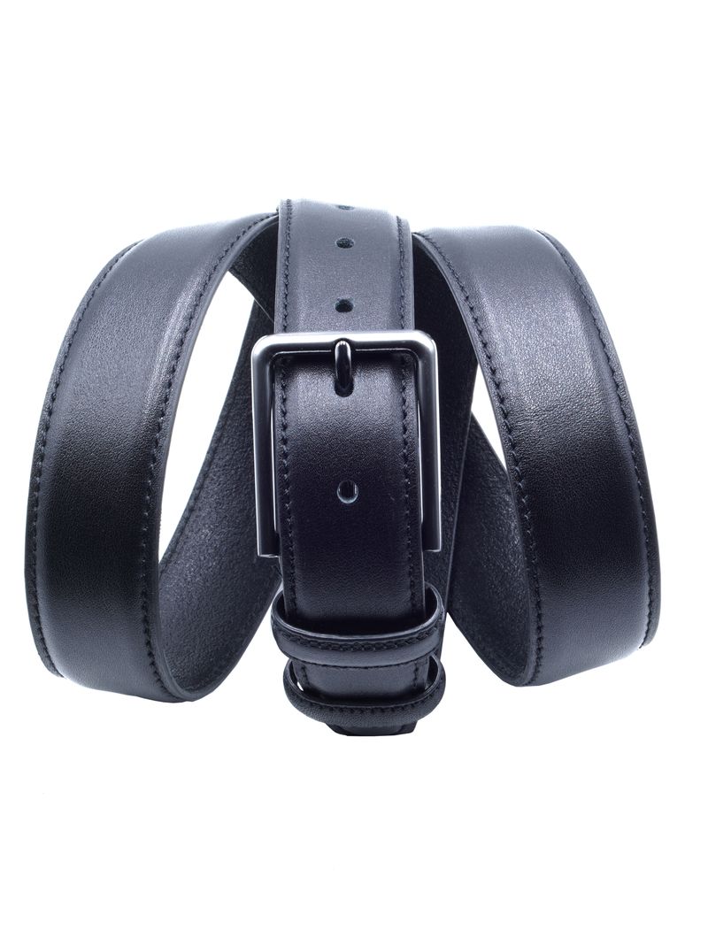 Мужской дутый ремень из натуральной кожи для брюк черного цвета, ширина 35 мм.
