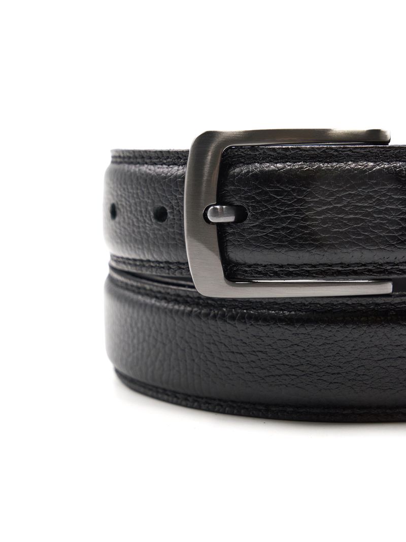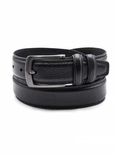 Мужской дутый ремень из натуральной кожи для брюк черного цвета, ширина 35 мм.