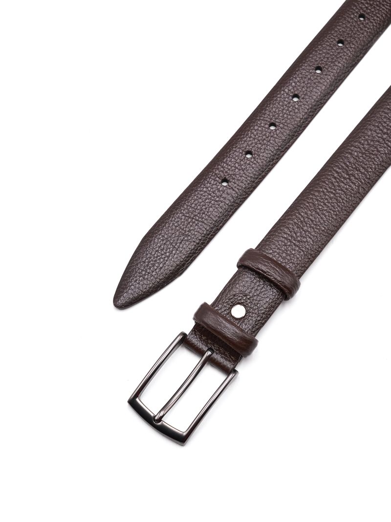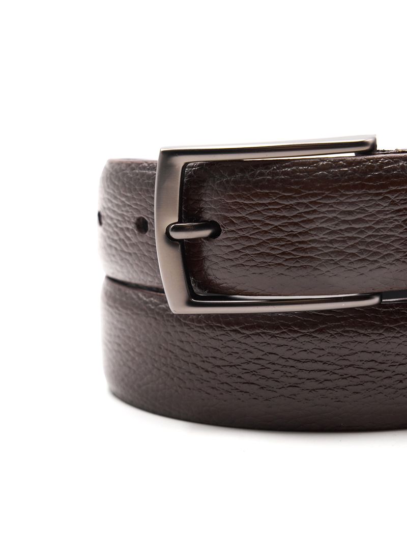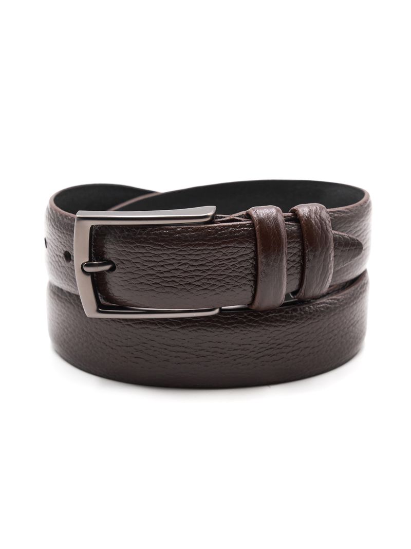 Мужской дутый ремень из натуральной кожи для брюк коричневого цвета, ширина 35 мм.