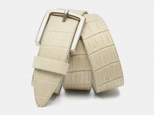 Кожаный бежевый мужской джинсовый ремень B40-2298