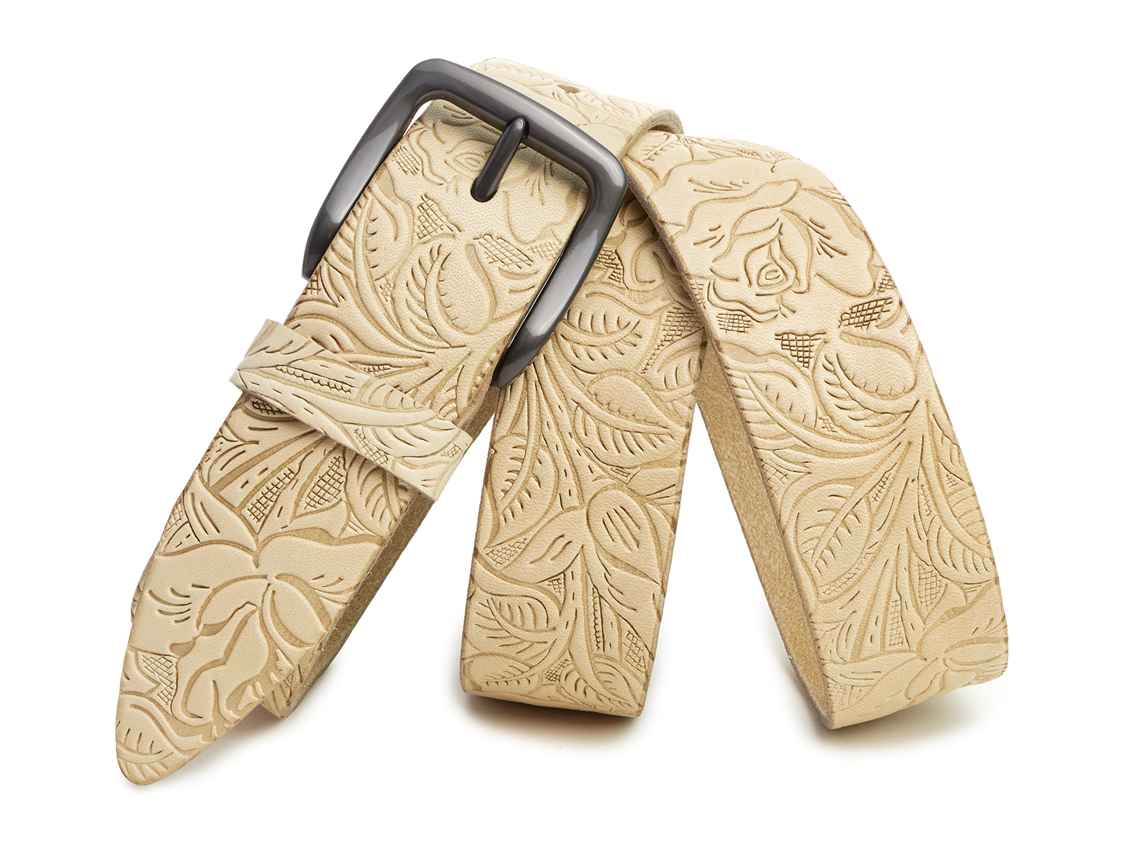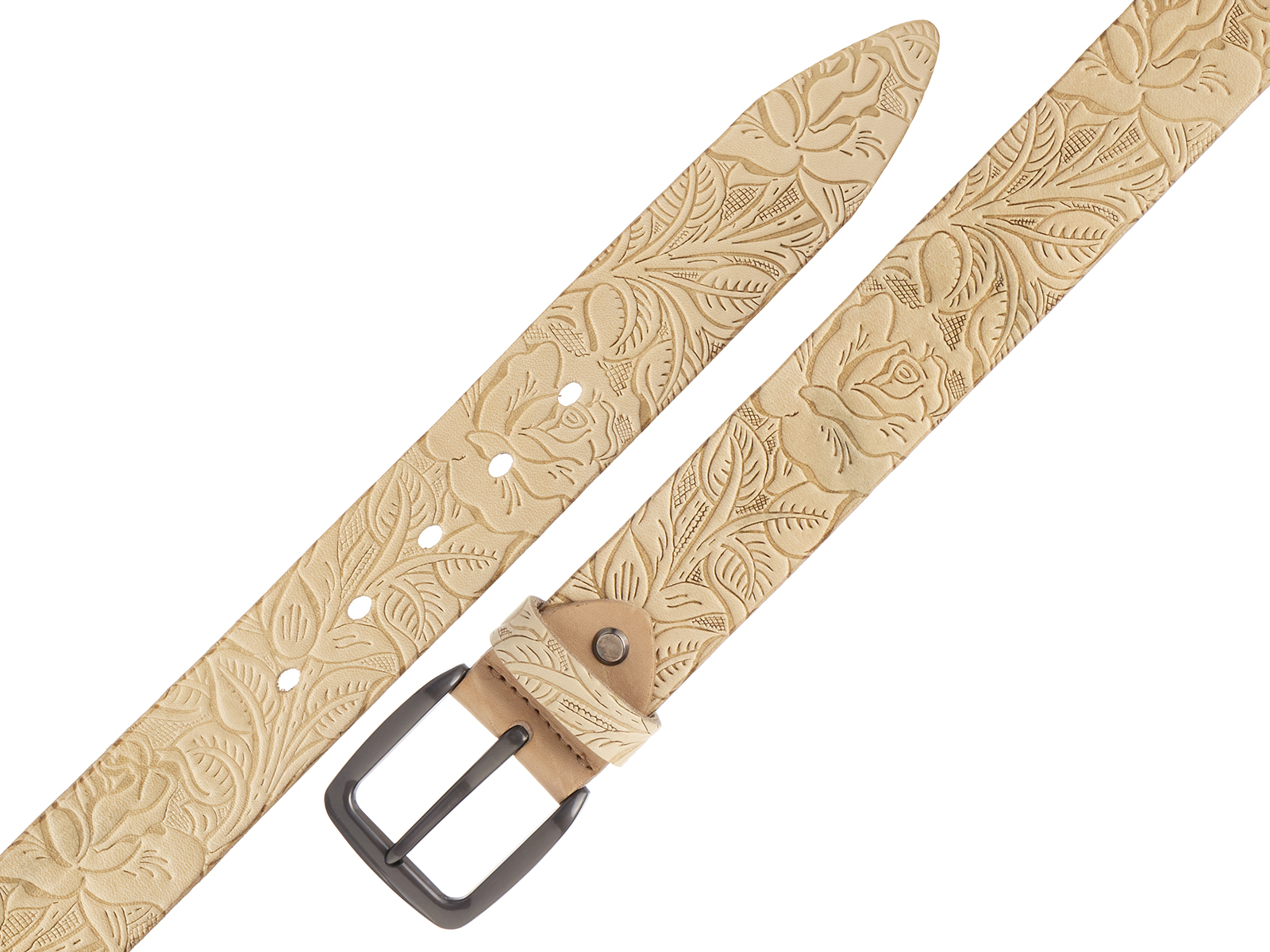 Кожаный бежевый женский джинсовый ремень B40-2109