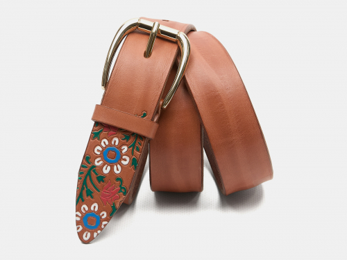 Кожаный коньячный женский джинсовый ремень B40-2309