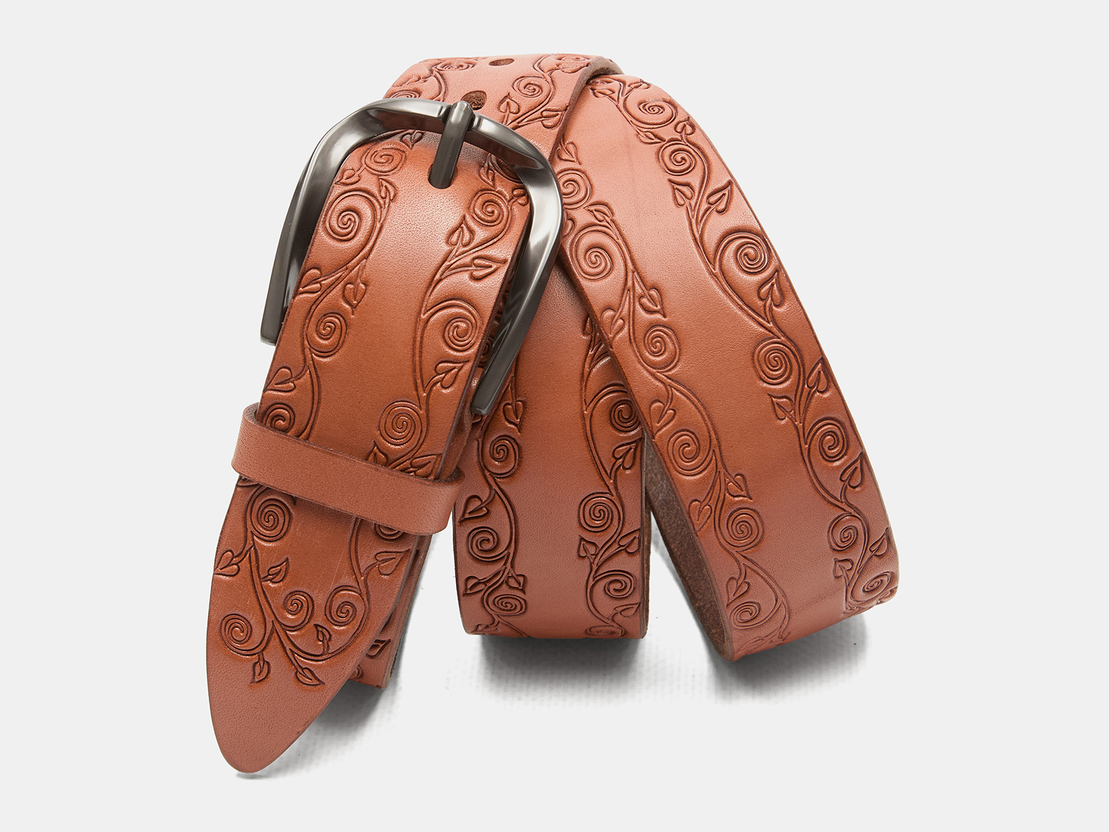 Кожаный коньячный женский джинсовый ремень B40-2343