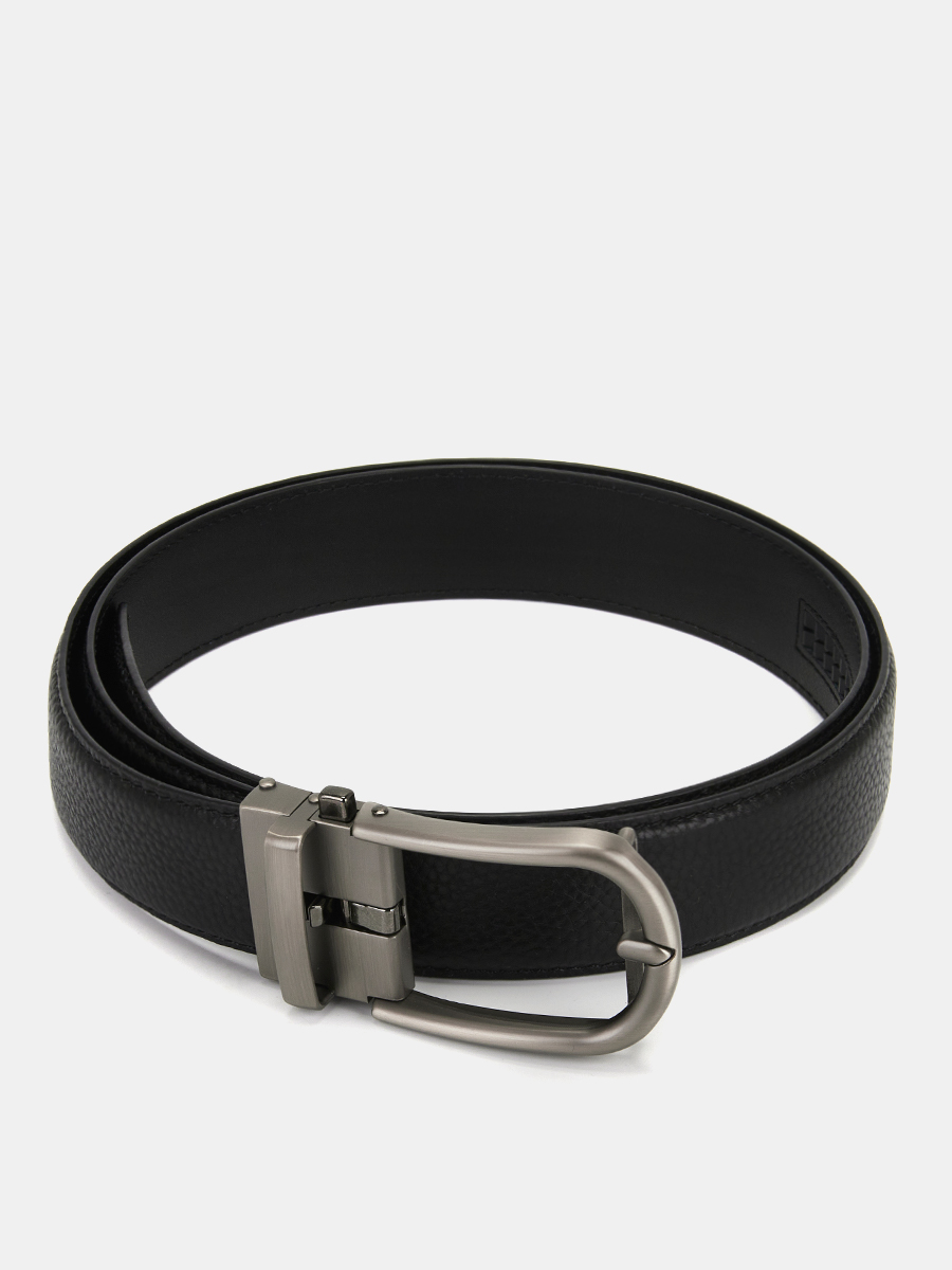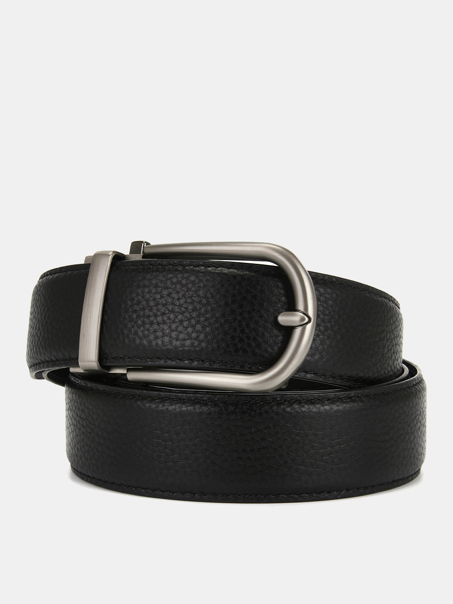 АУГР104400 Ремень мужской Классический мужской ремень из натуральной кожи черного цвета с пряжкой. Универсальный аксессуар для повседневной носки и делового стиля. Длина 130 см обеспечивает удобную посадку. Сдержанный дизайн подойдет к любым брюкам, джинсам или костюму. Практичный и стильный выбор для мужчин, ценящих комфорт и лаконичность