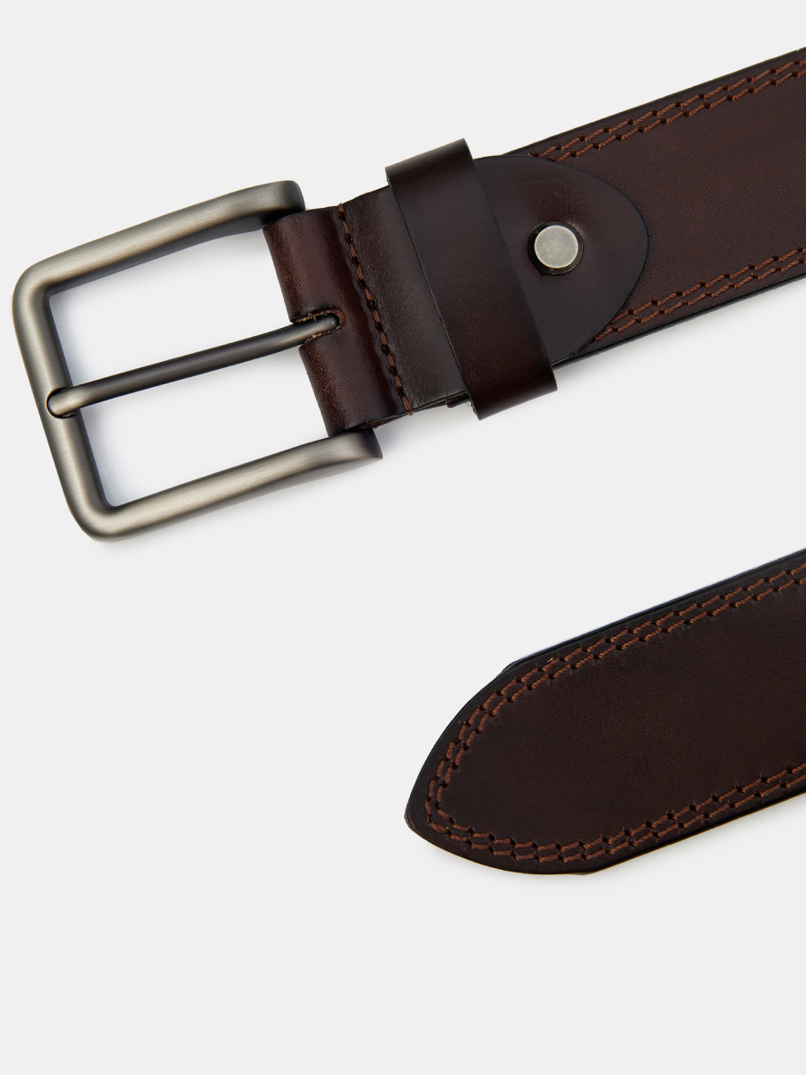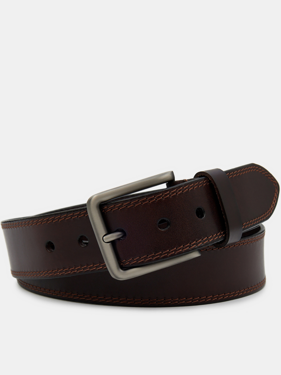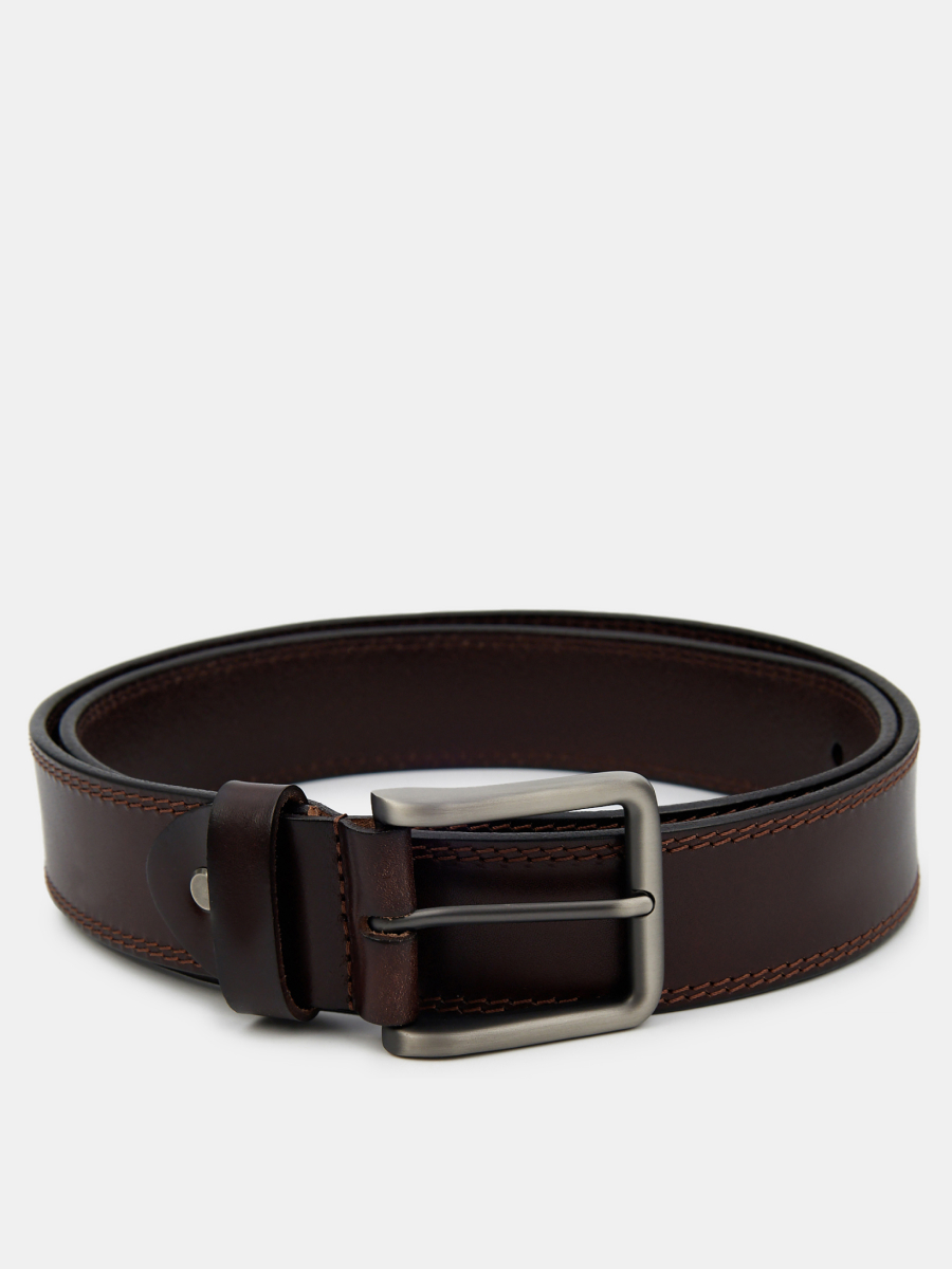 BELGRADE06-P-02 Ремень мужской Ralf Ringer,нат тур.кожа,3,9*110-130,коричневы Классический мужской ремень. Изготовлен из гладкой матовой кожи темно-коричневого цвета. Регулируется ремень металлической пряжкой привычной формы. Украшен строгой двойной прострочкой в контрастном цвете.