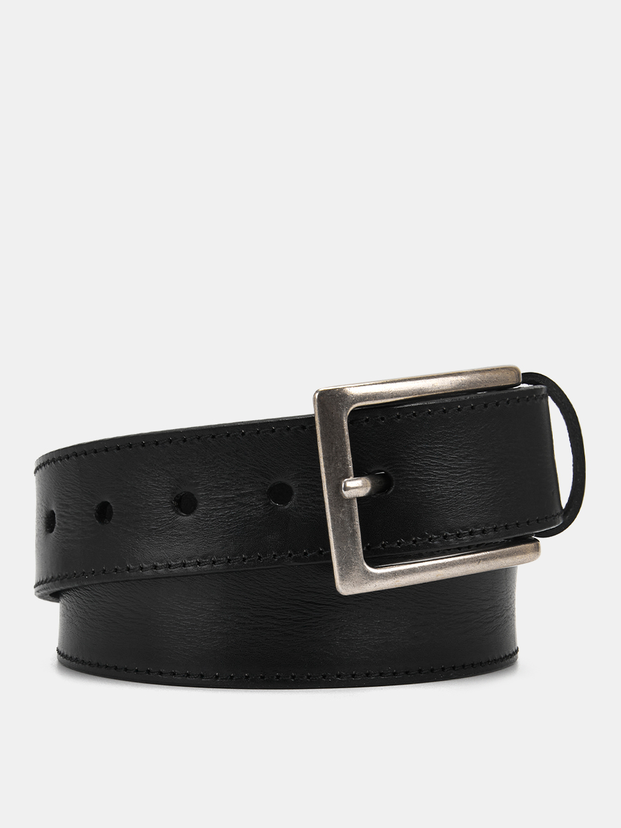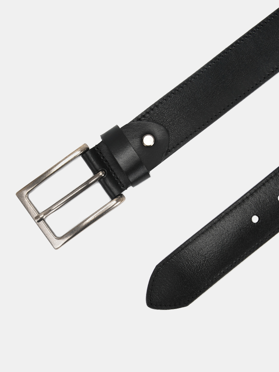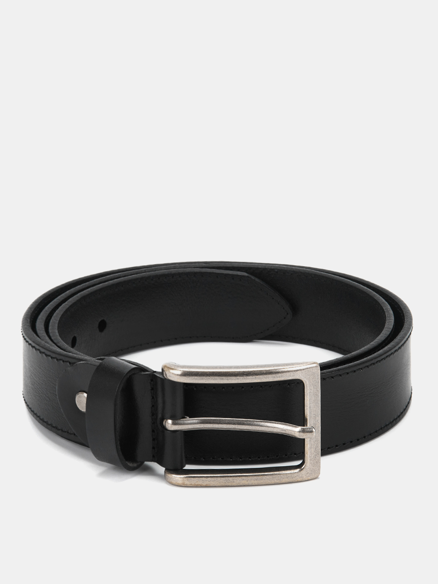 АУГР104500 Ремень мужской Универсальный мужской ремень из натуральной кожи в классическом черном цвете. Элегантная серебряная пряжка добавляет сдержанный шик, делая аксессуар подходящим как для повседневной носки, так и для делового стиля. Длина 130 см обеспечивает удобную посадку, а прочная кожа гарантирует долговечность.