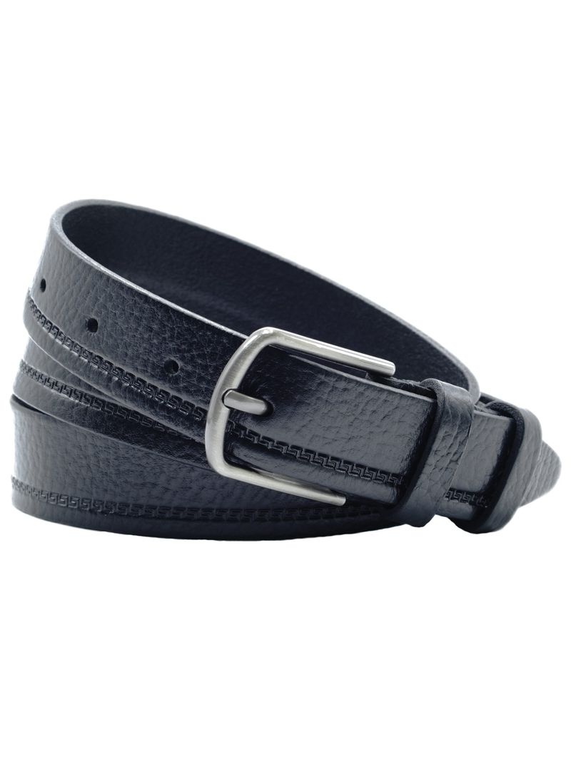 Мужской ремень из натуральной кожи Флотер для брюк черного цвета, ширина 30 мм.