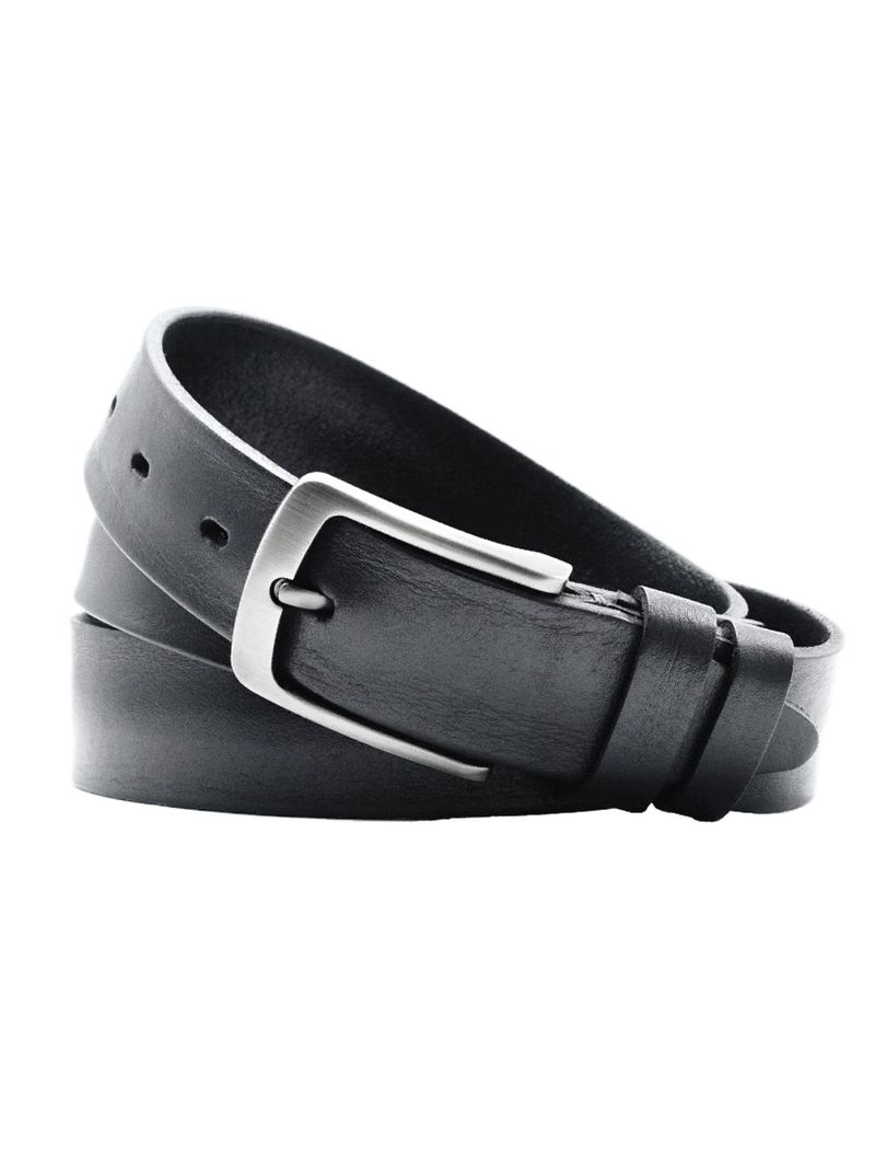 Мужской классический ремень из итальянской натуральной кожи для брюк и джинсов черного цвета, ширина 35 мм.