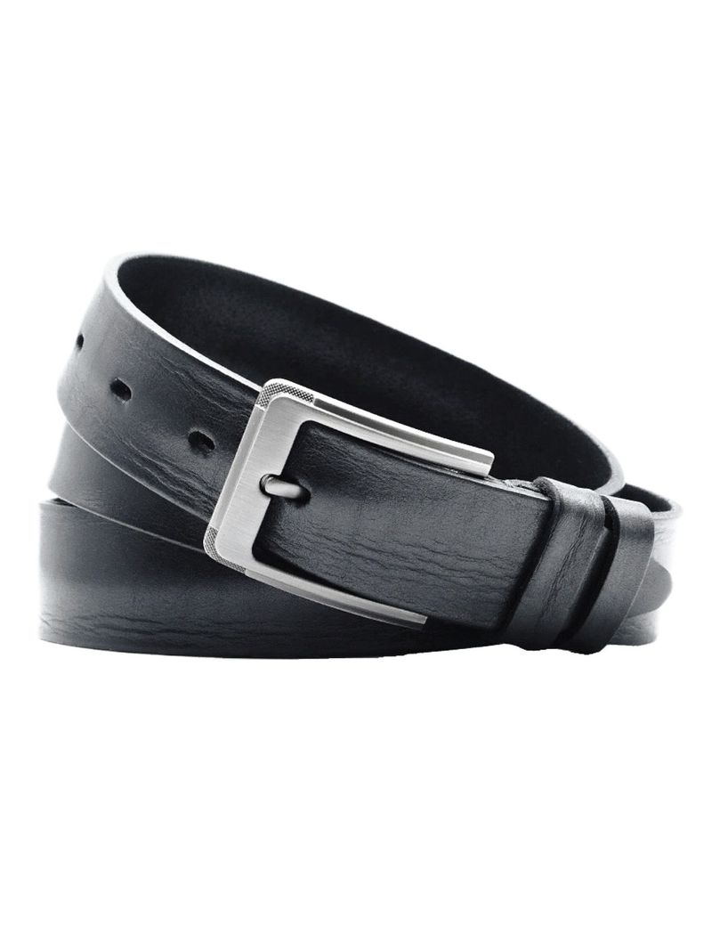 Мужской классический ремень из итальянской натуральной кожи для брюк и джинсов черного цвета, ширина 35 мм.