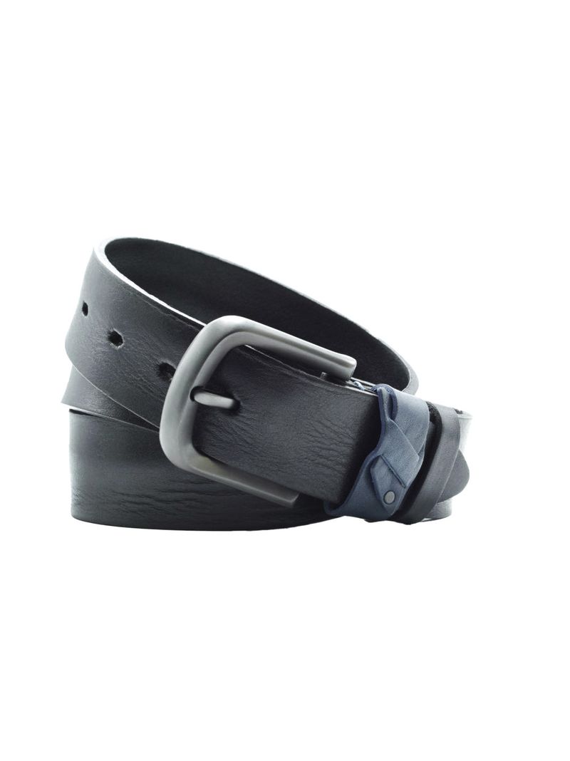 Мужской ремень из натуральной кожи для джинс черного цвета, ширина 40 мм.