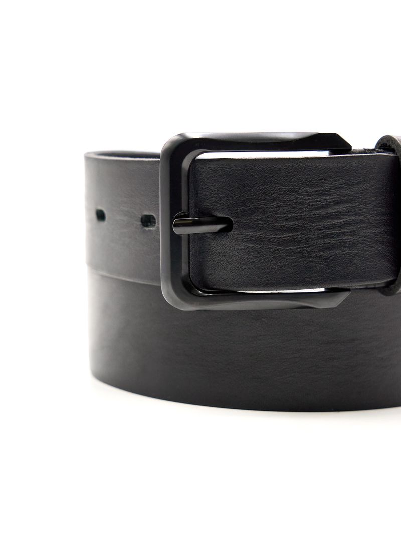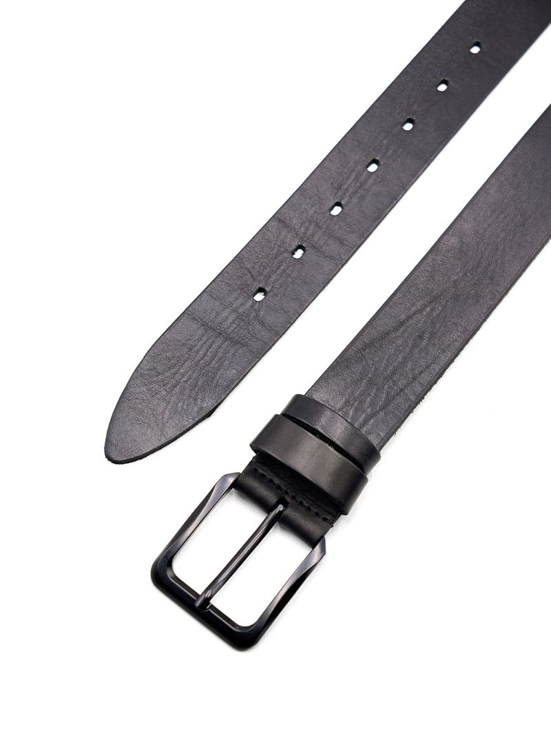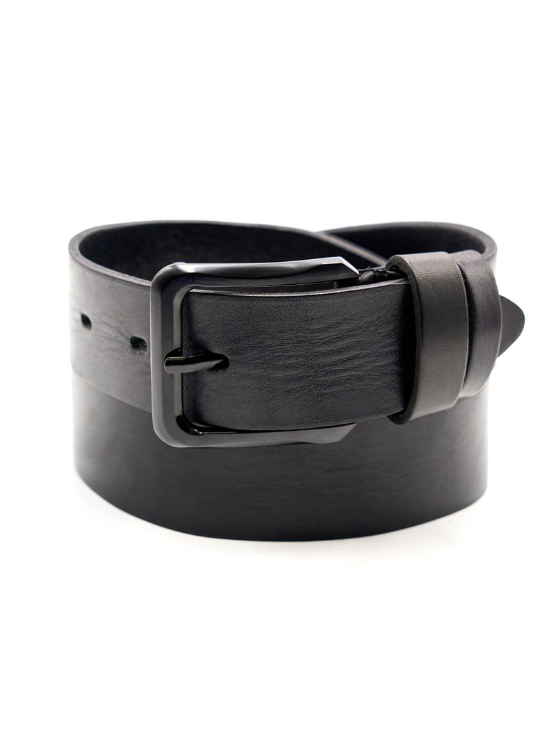 Мужской ремень из натуральной кожи для джинсов черного цвета, ширина 45 мм.