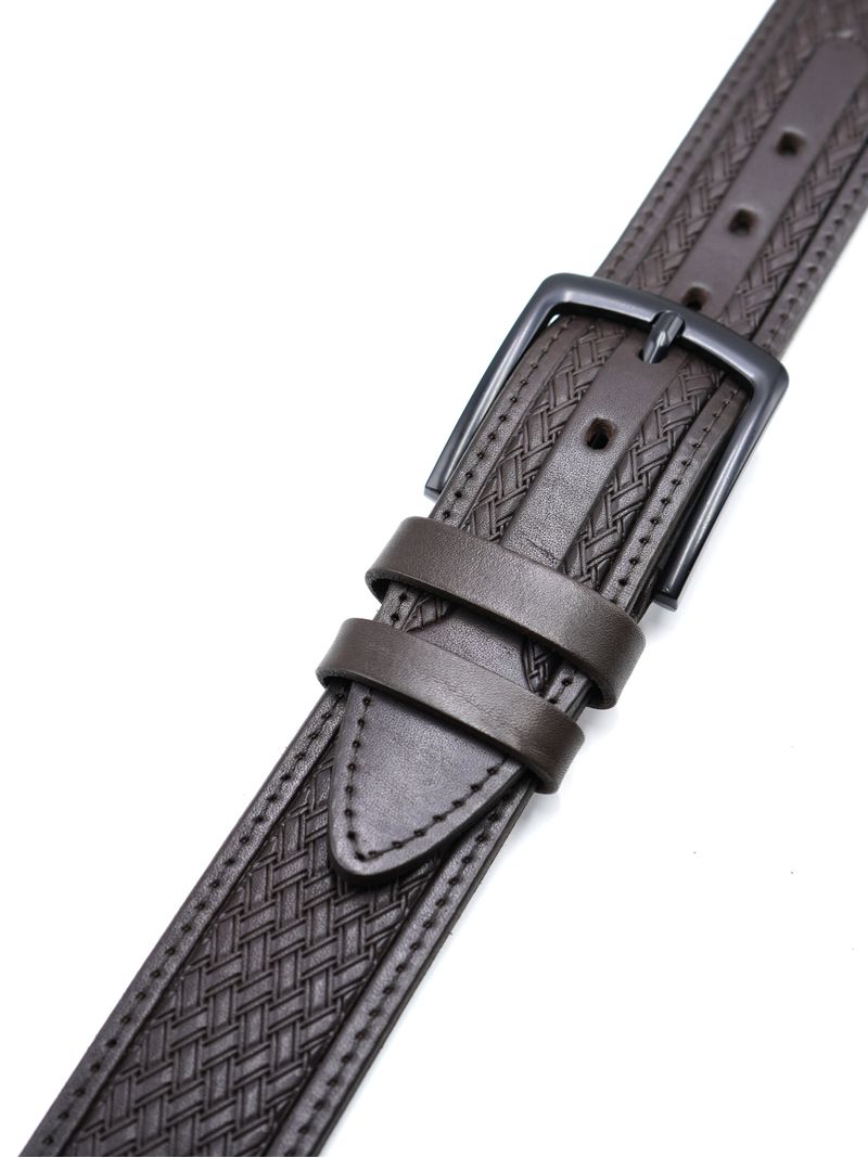 Мужской ремень из натуральной кожи для джинсов коричневого цвета, ширина 45 мм.