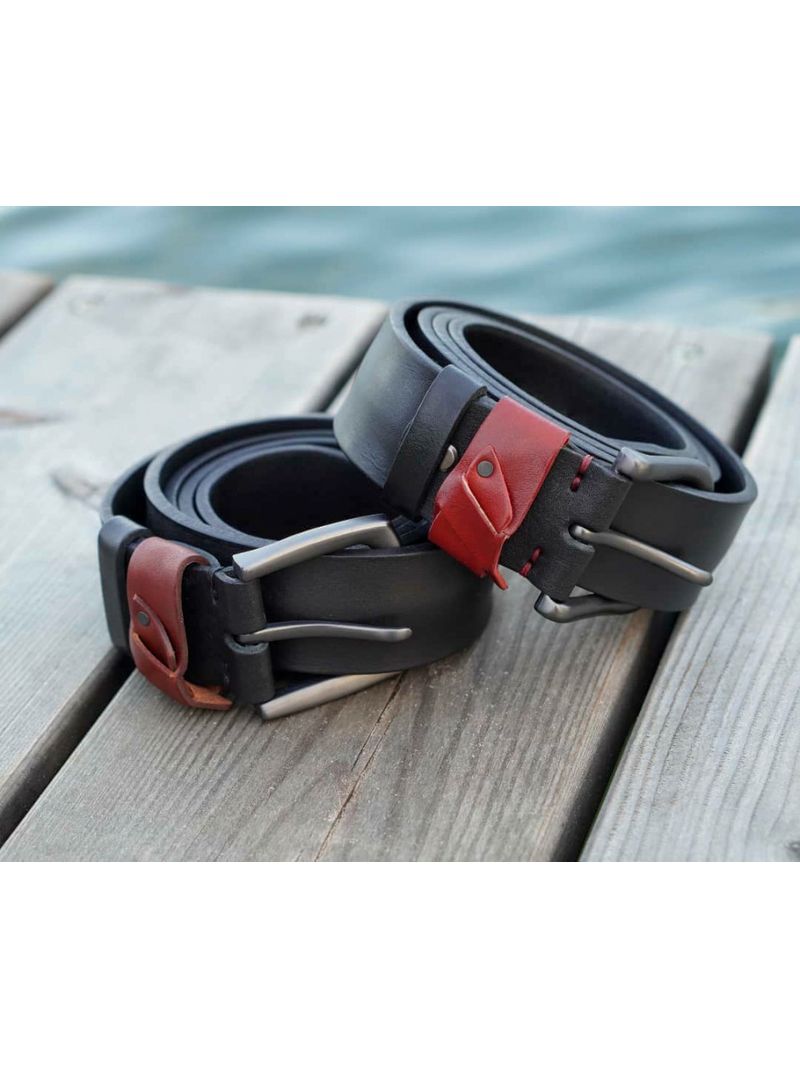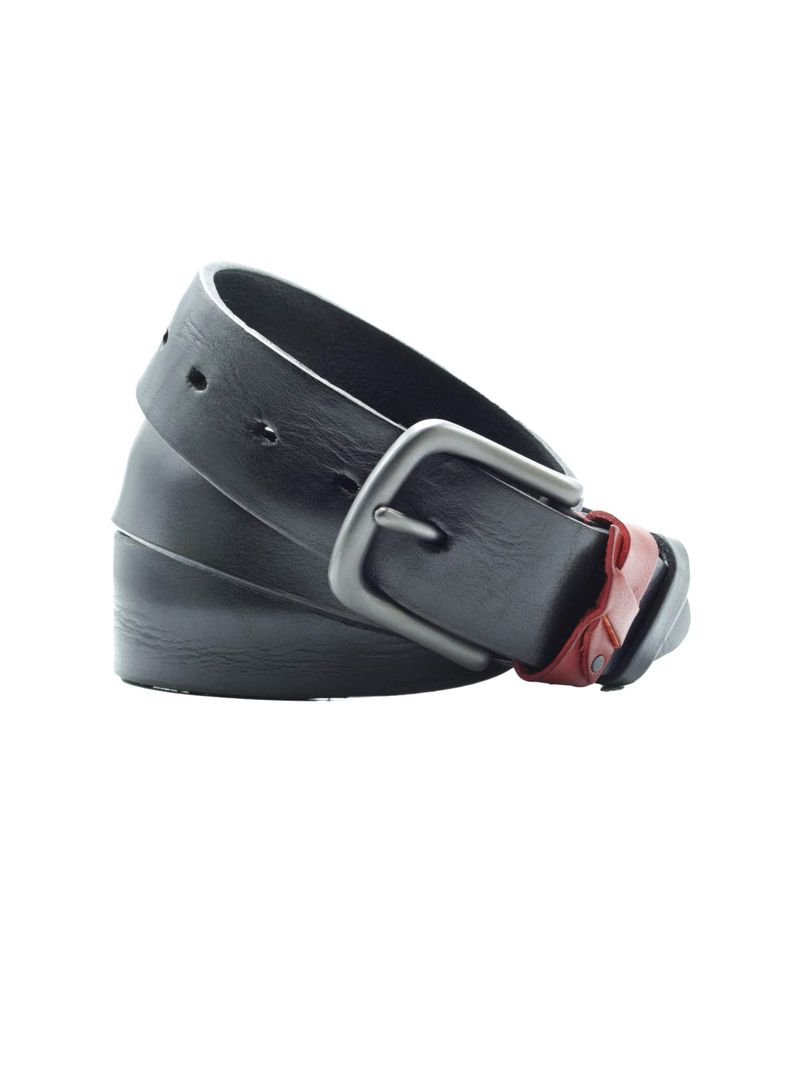 Мужской ремень из натуральной кожи для джинс черного цвета, ширина 40 мм.