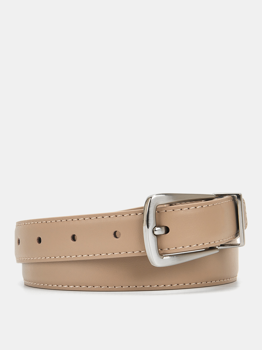 АУГР101300 Ремень женский Женский ремень из натуральной кожи бежевого цвета с серебряной пряжкой. Длина 115 см обеспечивает удобную посадку, а качественная кожа гарантирует мягкость и долговечность. Универсальный аксессуар для создания утонченных образов – идеально дополнит платья, юбки, брюки и джинсы.