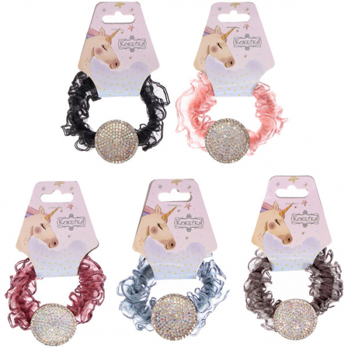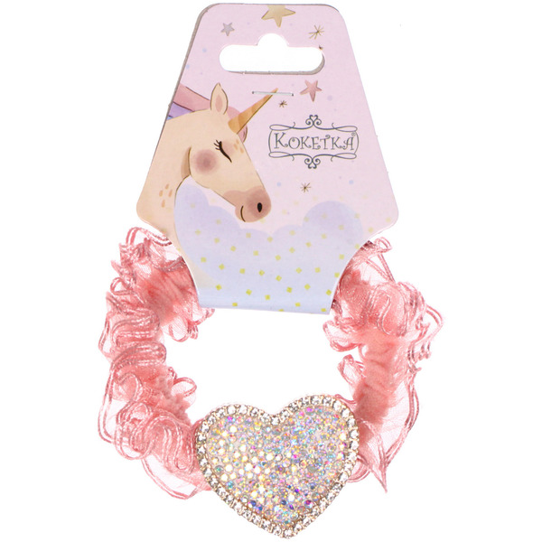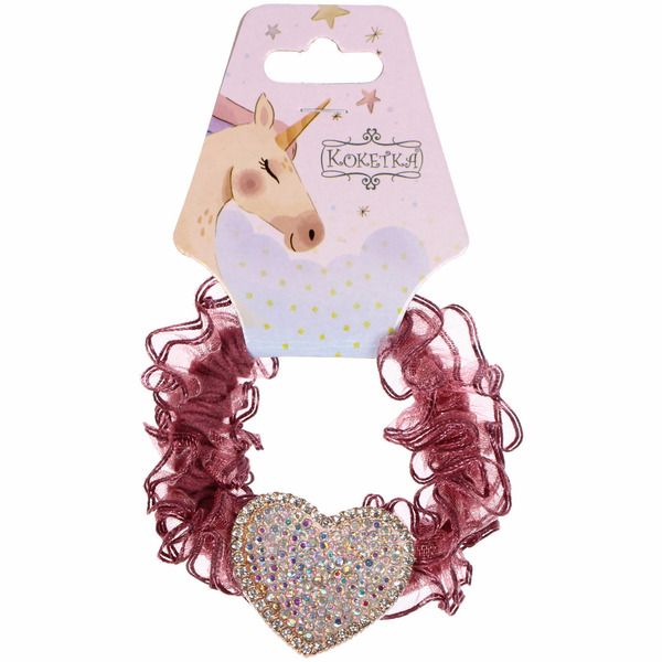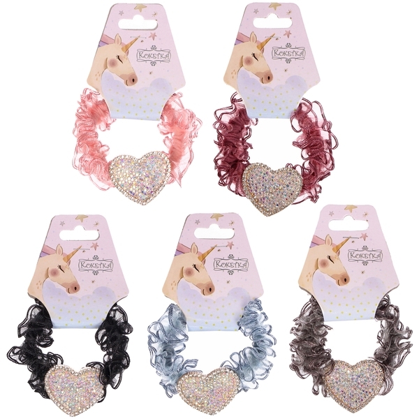 Резинка для волос 1шт "ЕЖЕВИКА", сердце, микс 5 цветов, d-5см (подвес Единорог)