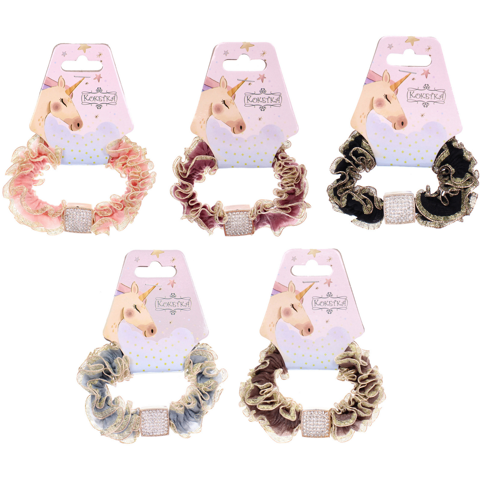 Резинка для волос 1шт "МАЛЬТА", квадратик, микс 5 цветов, d-5см (подвес Единорог)