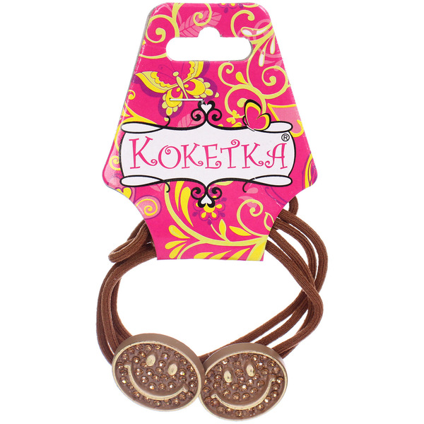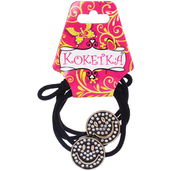 Резинки для волос 2шт "ФАНТЕЭГРО", смайлики, цвет черный, молочный и коричневый, d-5.5см (Кокетка)