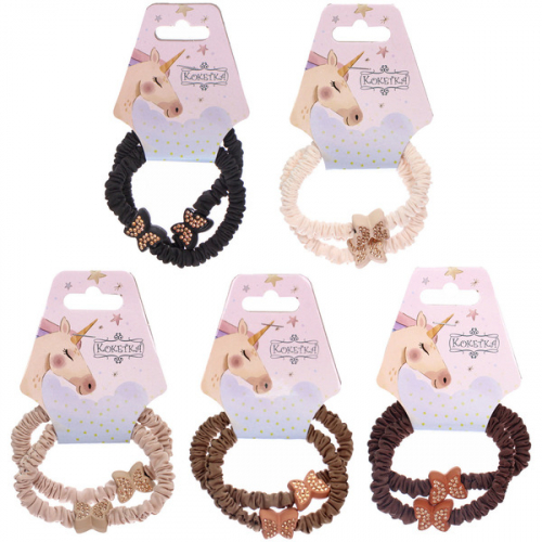 Резинки для волос 2шт "КИРА", квадратики, микс 5 цветов, d-5см (подвес Единорог)