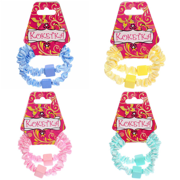 Резинки для волос 2шт "Мята", кубики, микс 5 цветов, d-5см (Кокетка)
