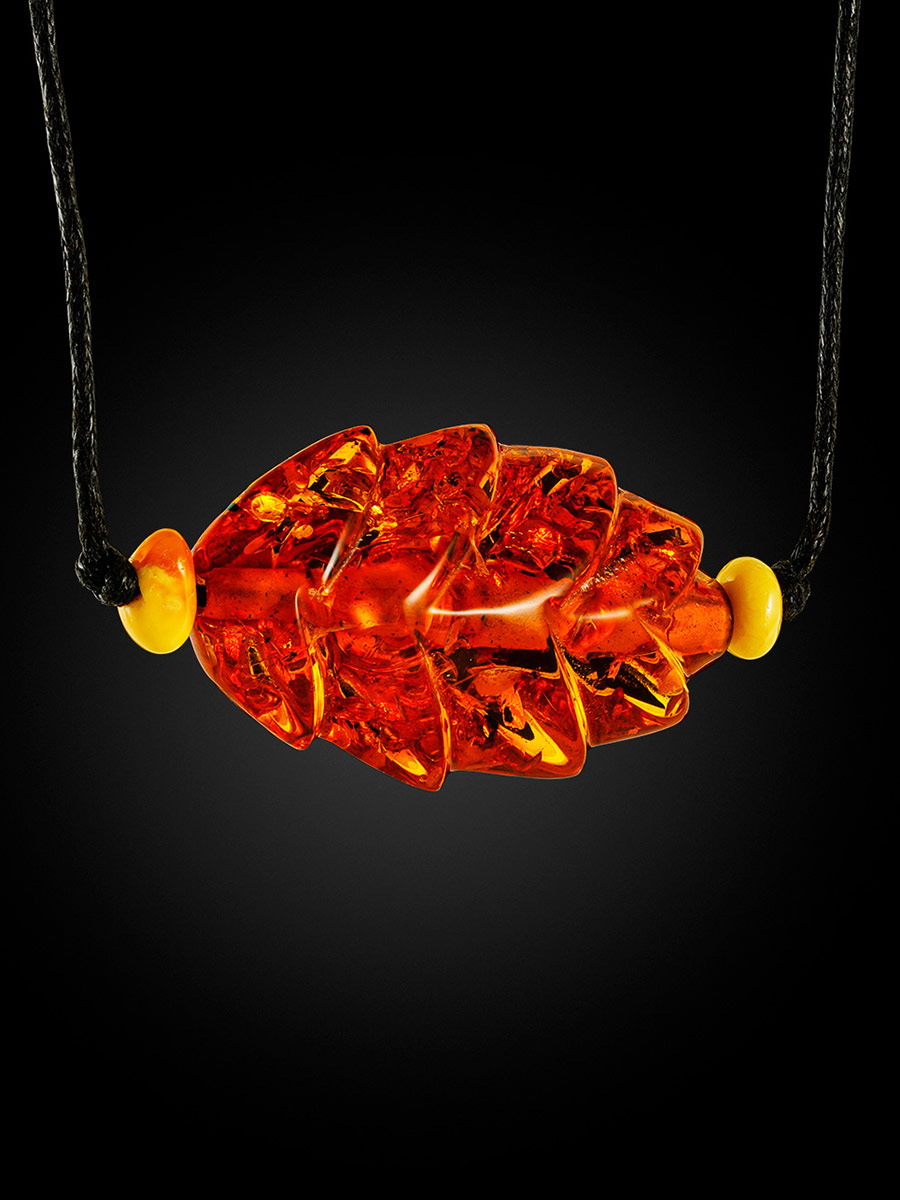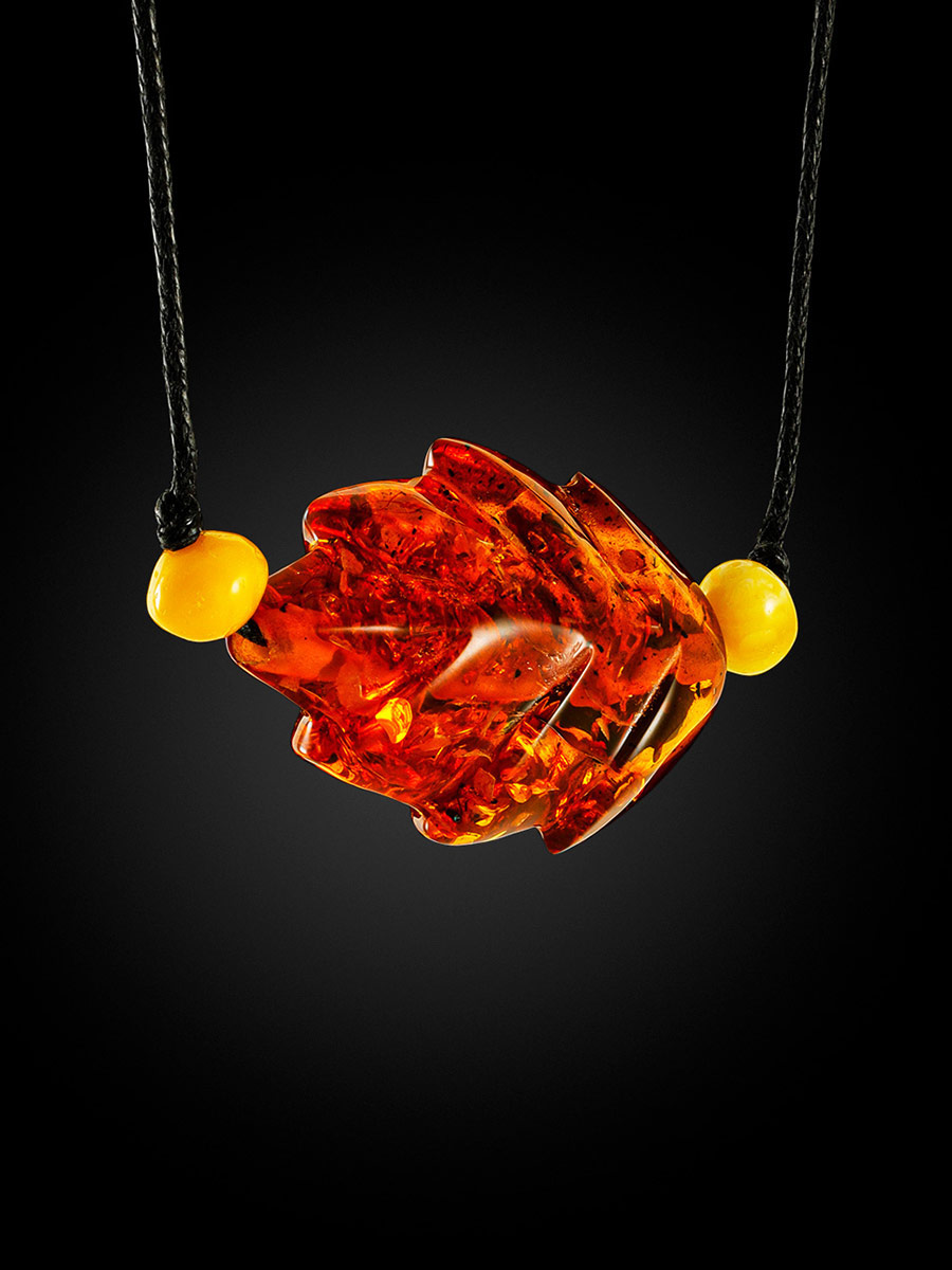 Резной кулон из янтаря коньячного цвета на шнурке «Листочек»