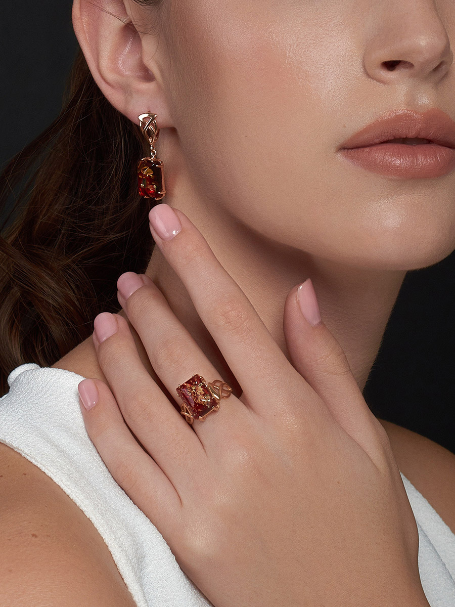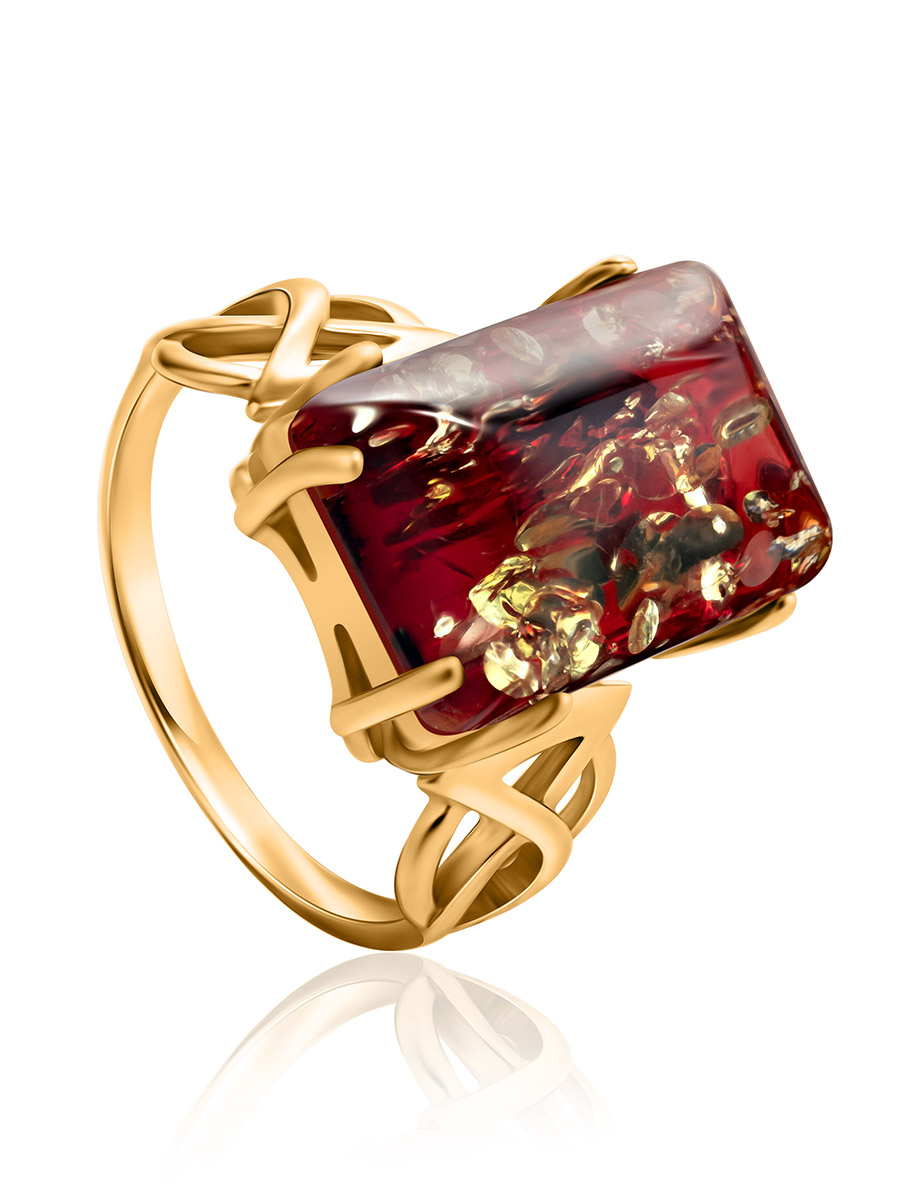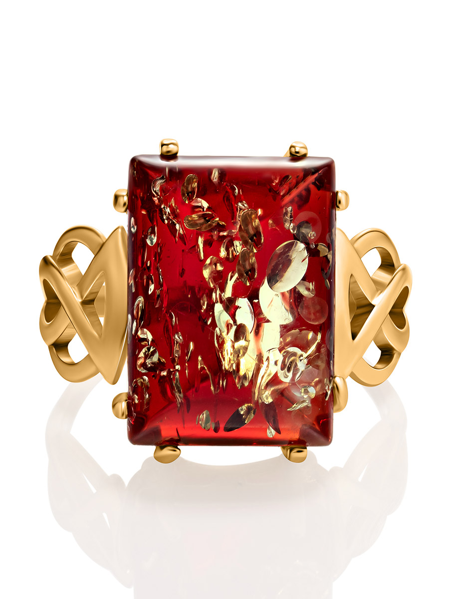 Роскошное яркое кольцо «Спарта» из красного янтаря