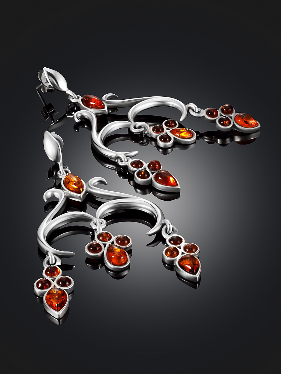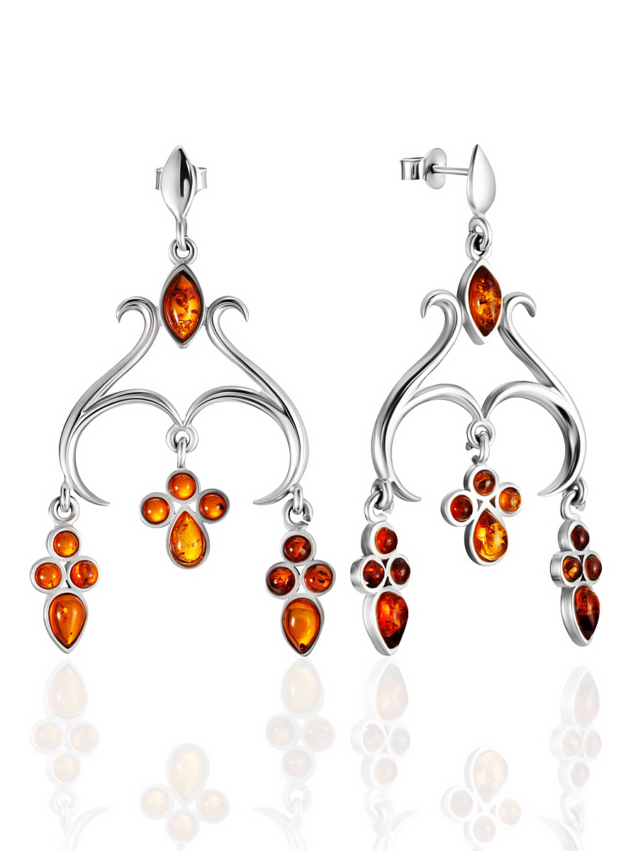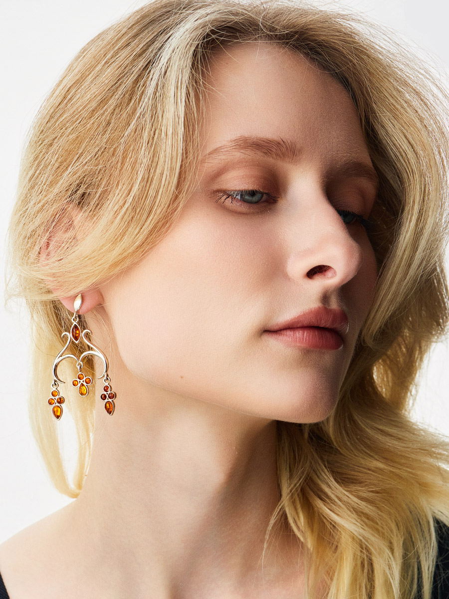 Роскошные серьги-люстры с натуральным янтарём «Аквитания»