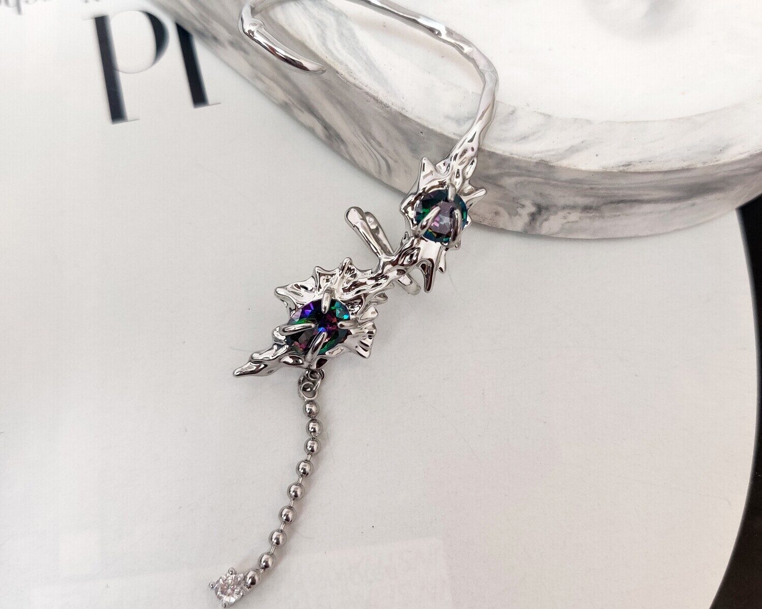 Серьги-каффы с благородными цирконами изготовлены из специального гипоаллергенного ювелирного сплава, который покрыт золотом или устойчивым родиевым покрытием, предотвращающим раздражение кожных покровов.