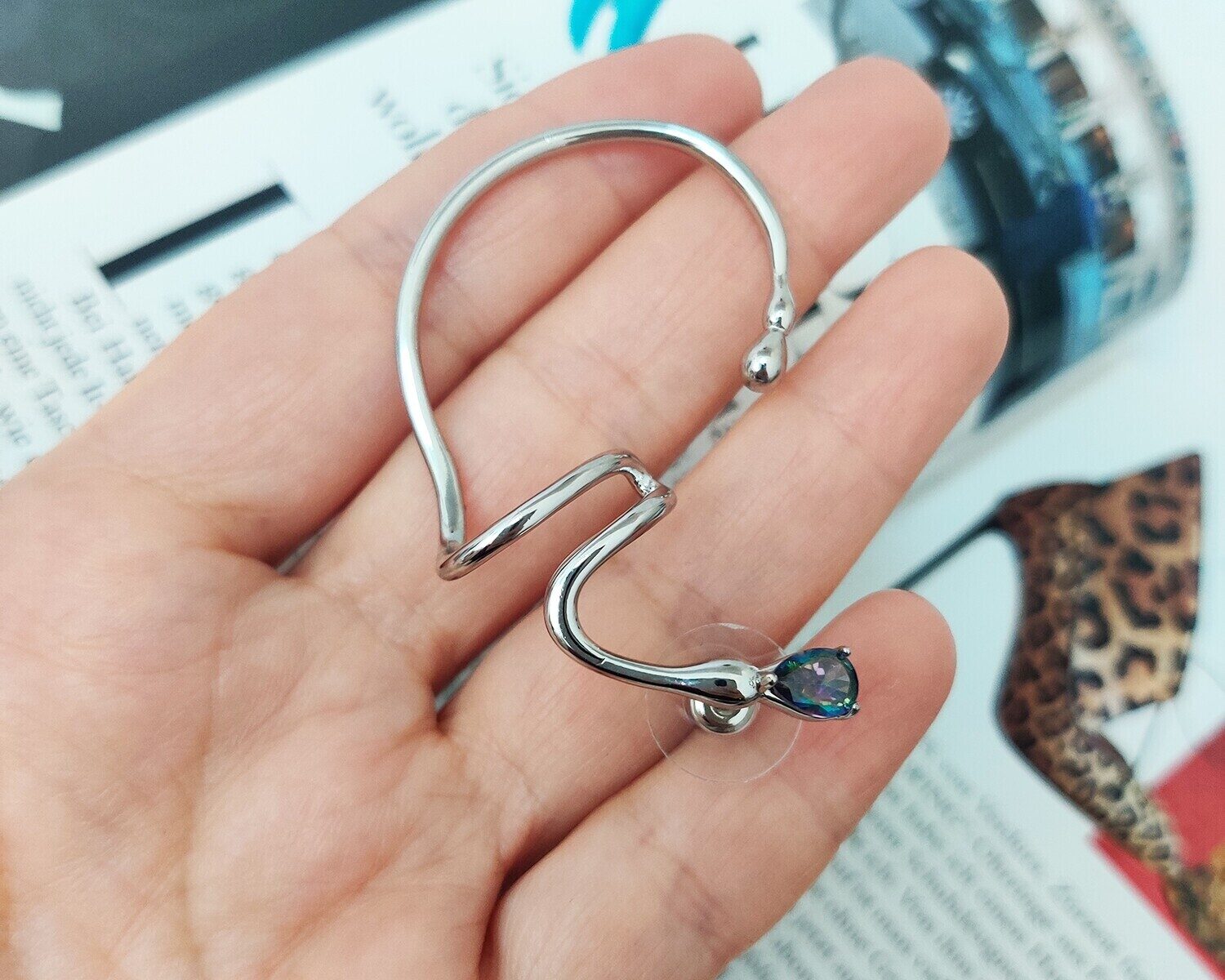 Серьги-каффы с благородными цирконами изготовлены из специального гипоаллергенного ювелирного сплава, который покрыт золотом или устойчивым родиевым покрытием, предотвращающим раздражение кожных покровов.