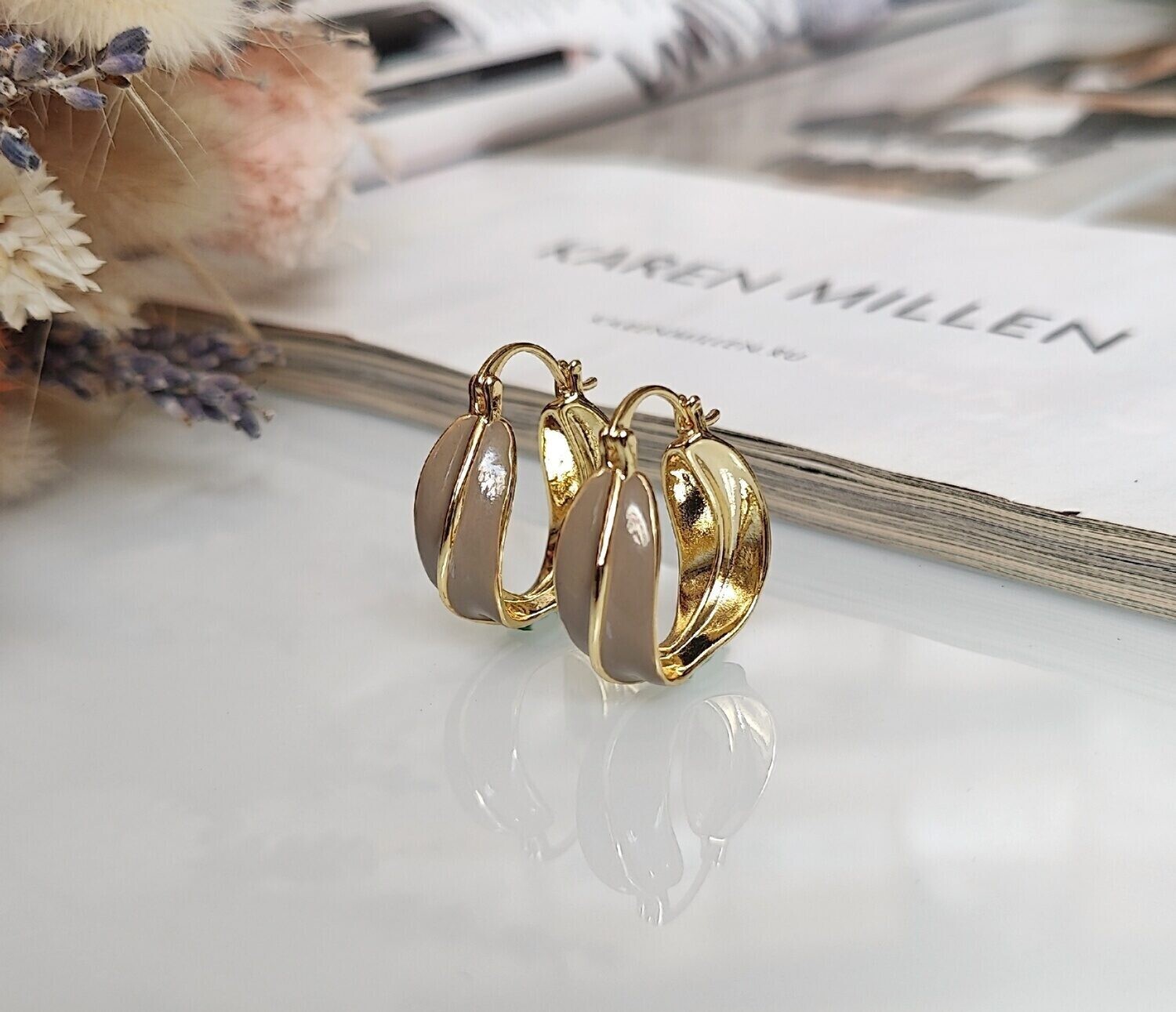 Красивые серьги из специального гипоаллергенного ювелирного сплава, который покрыт золотом или устойчивым родиевым покрытием, предотвращающим раздражение кожных покровов. . Длина серёг - 2,3 см., диаметр - 2 см.