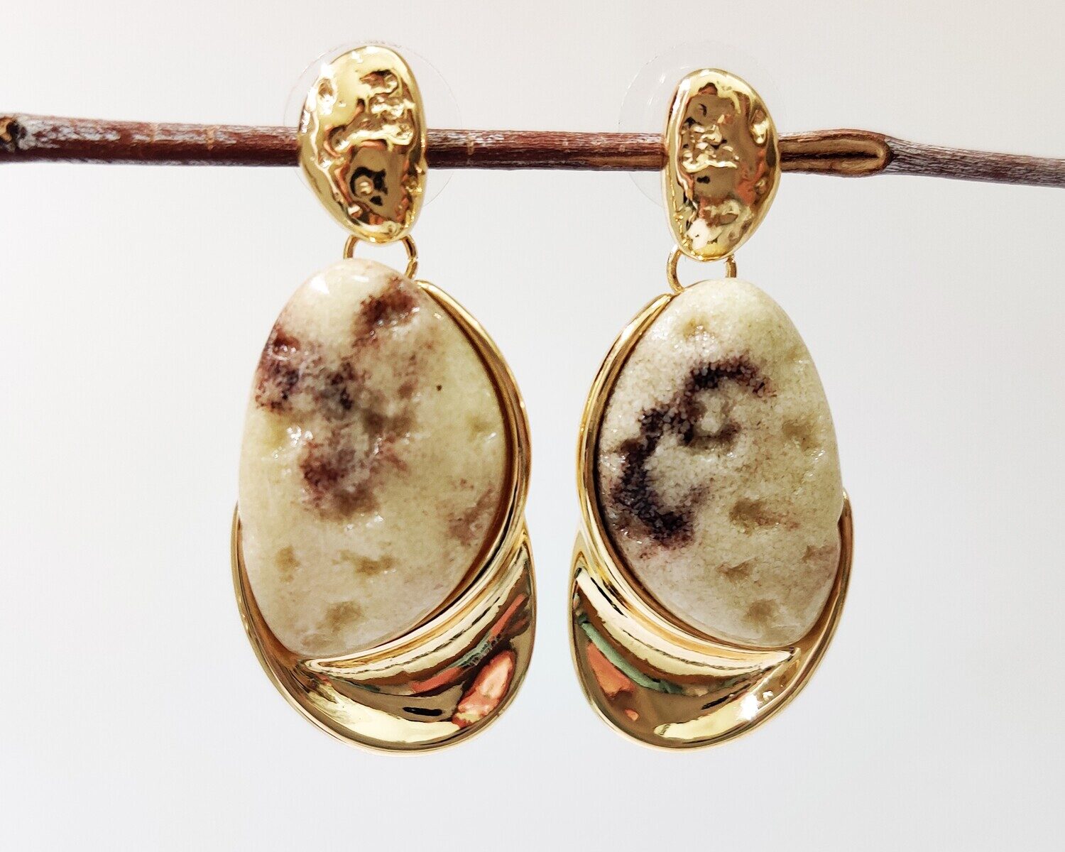 Cерьги из специального гипоаллергенного ювелирного сплава, который покрыт золотом или устойчивым родиевым покрытием, предотвращающим раздражение кожных покровов.