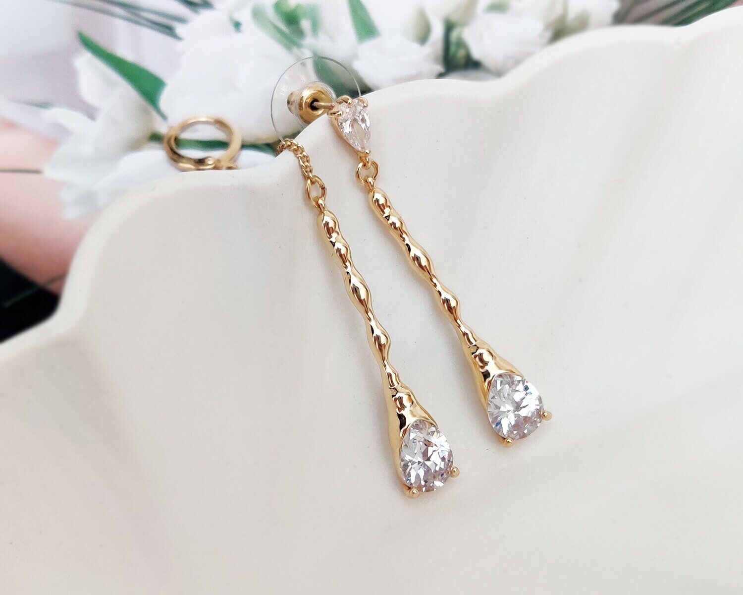 Cерьги из специального гипоаллергенного ювелирного сплава, который покрыт золотом или устойчивым родиевым покрытием, предотвращающим раздражение кожных покровов.