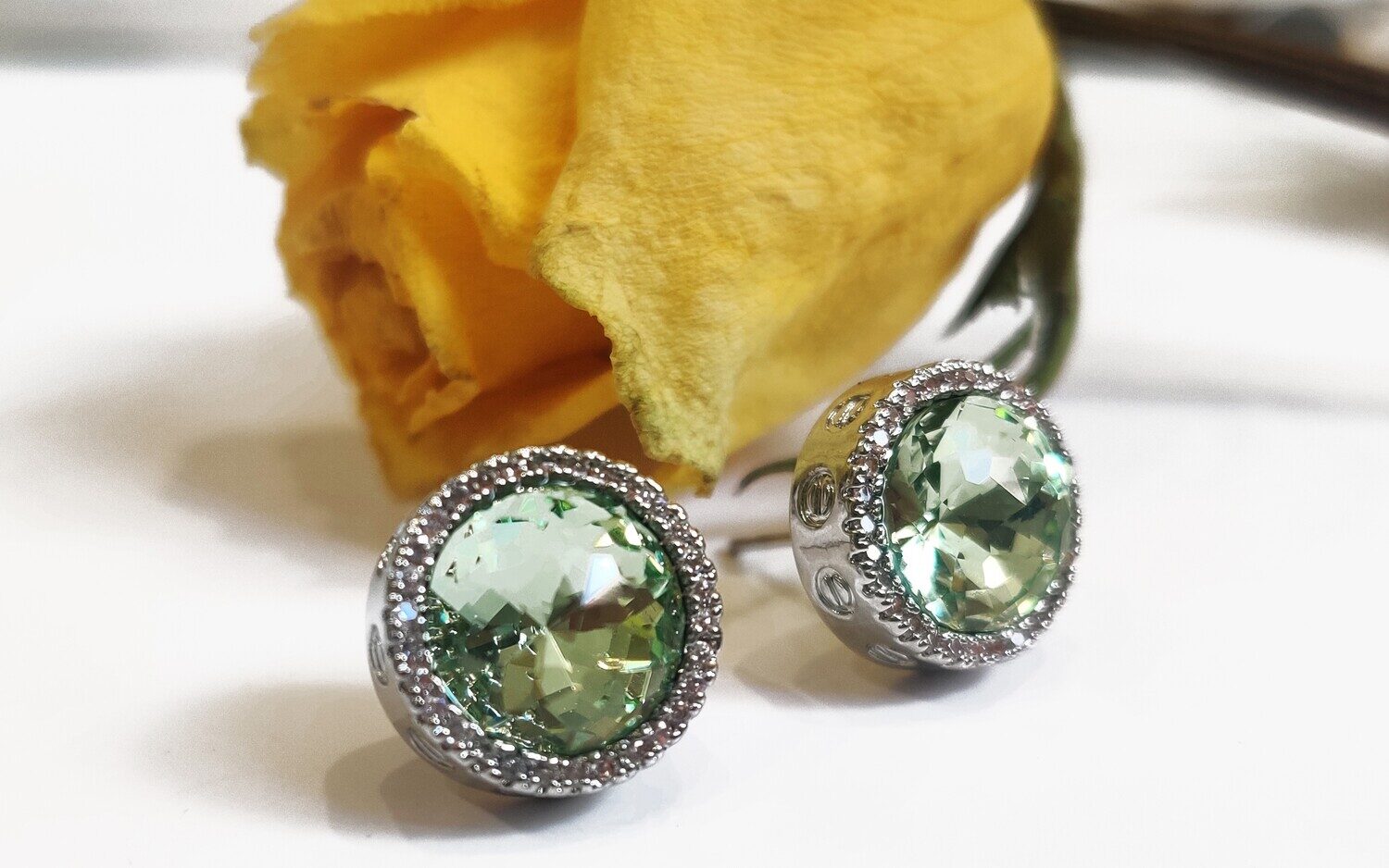 Красивые серьги из специального гипоаллергенного ювелирного сплава, который покрыт серебром или устойчивым родиевым покрытием, предотвращающим раздражение кожных покровов.Диаметр кристалла 10.5 мм