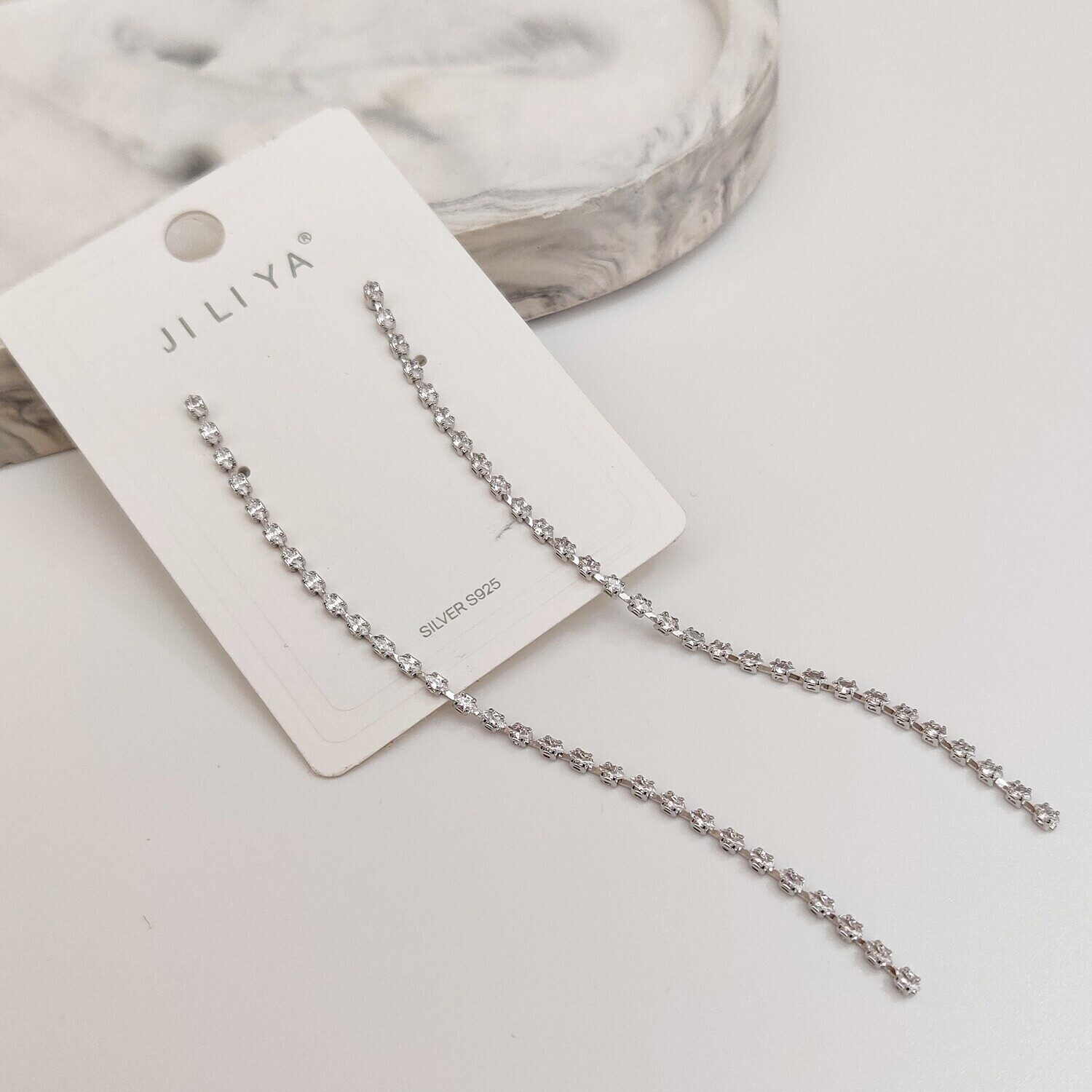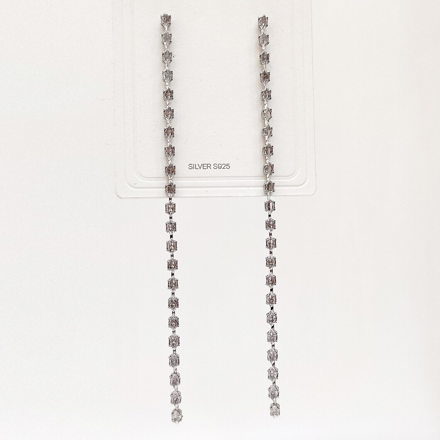 Красивые серьги со стразами из специального гипоаллергенного ювелирного сплава, покрытый  серебром  или устойчивым родиевым покрытием, предотвращающим раздражение кожных покровов.