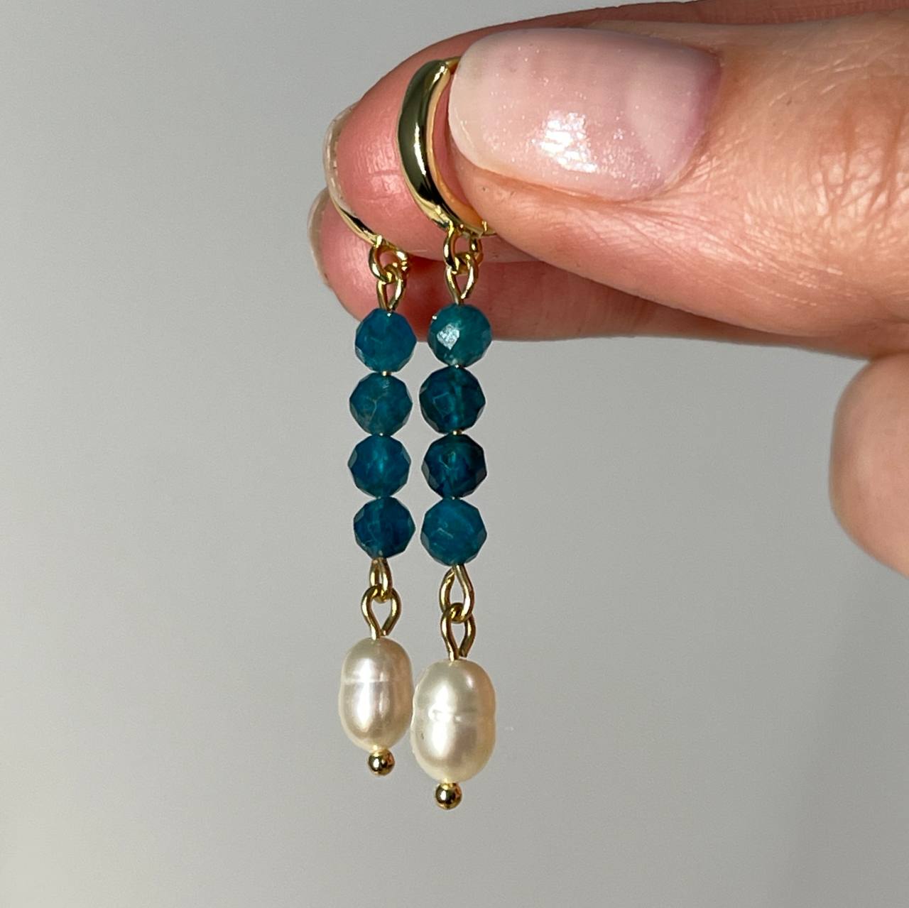 Радуга Самоцветов Серьги длинные из Апатита и Жемчуга