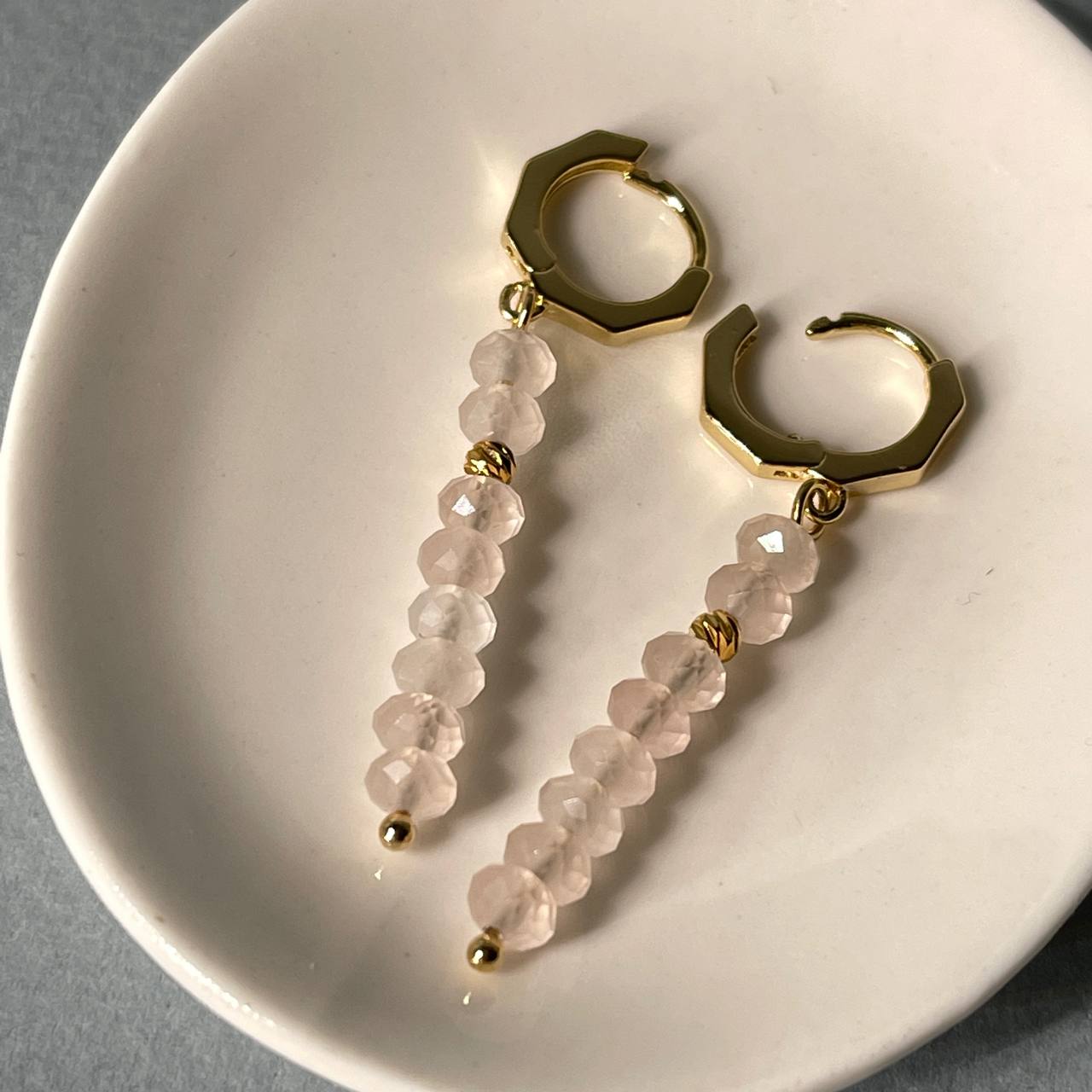 Радуга Самоцветов Серьги длинные с Розовым кварцем