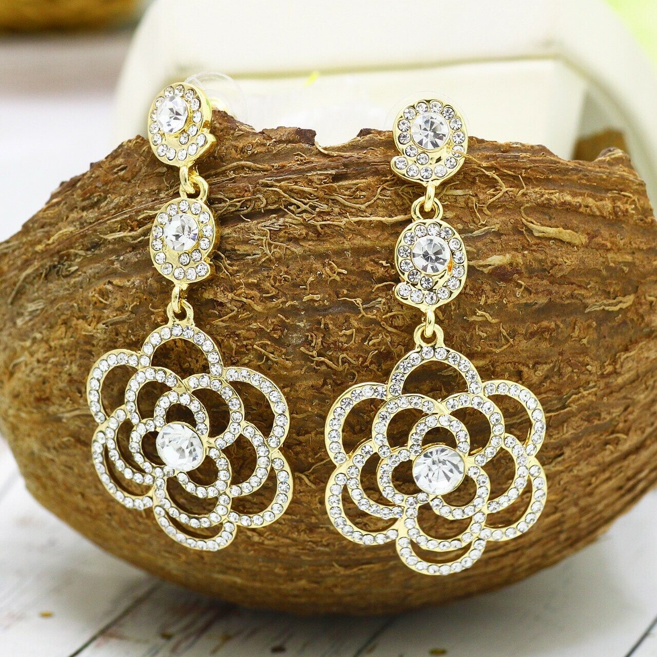 Красивые серьги с благородными кристаллами из специального гипоаллергенного ювелирного сплава, который покрыт золотом или устойчивым родиевым покрытием, предотвращающим раздражение кожных покровов.