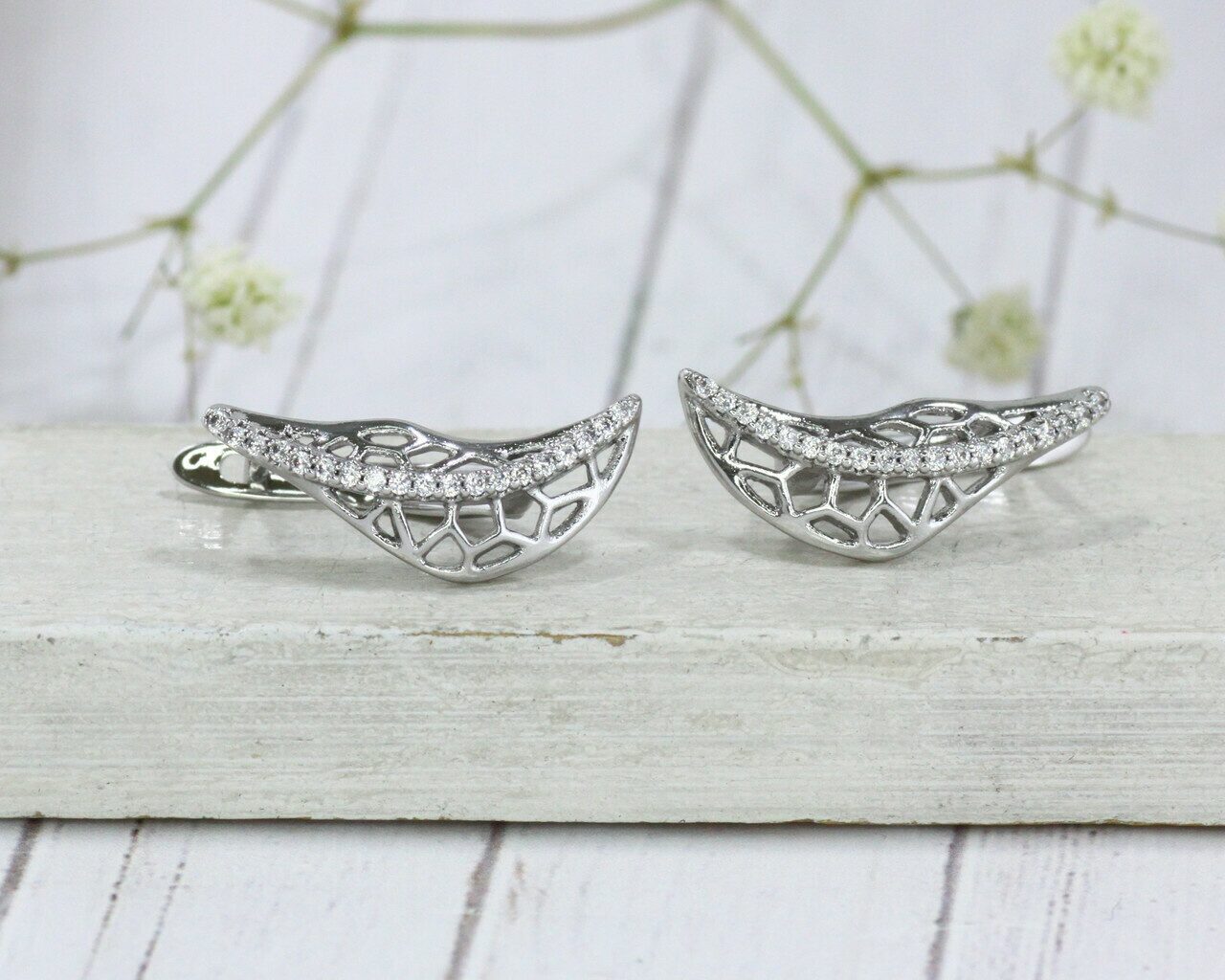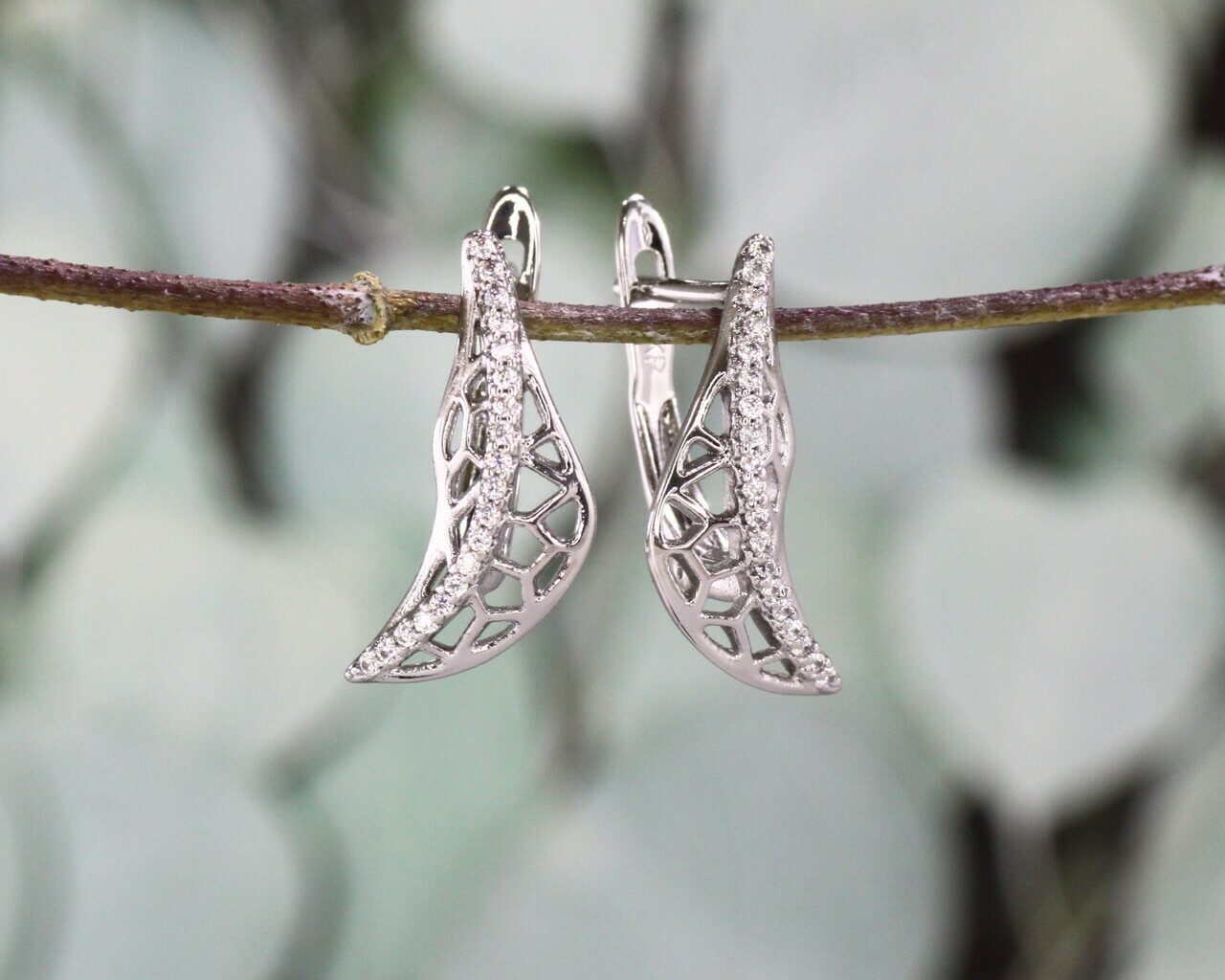 Красивые серьги с благородными цирконами изготовлены из специального гипоаллергенного ювелирного сплава, который покрыт золотом или устойчивым родиевым покрытием, предотвращающим раздражение кожных покровов. Размер сережки: 2 см * 0.6 см