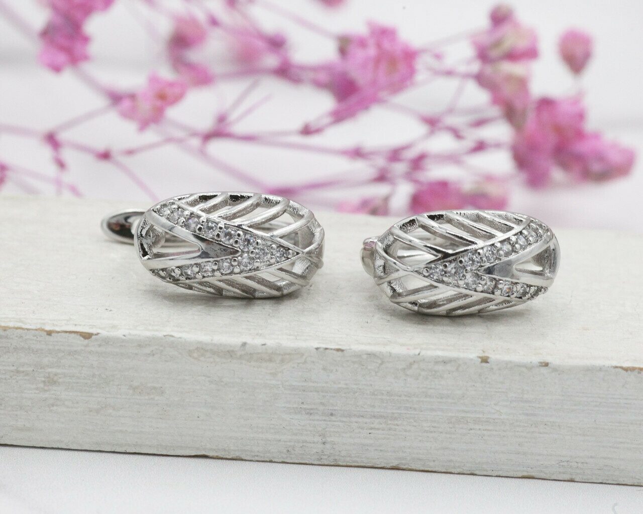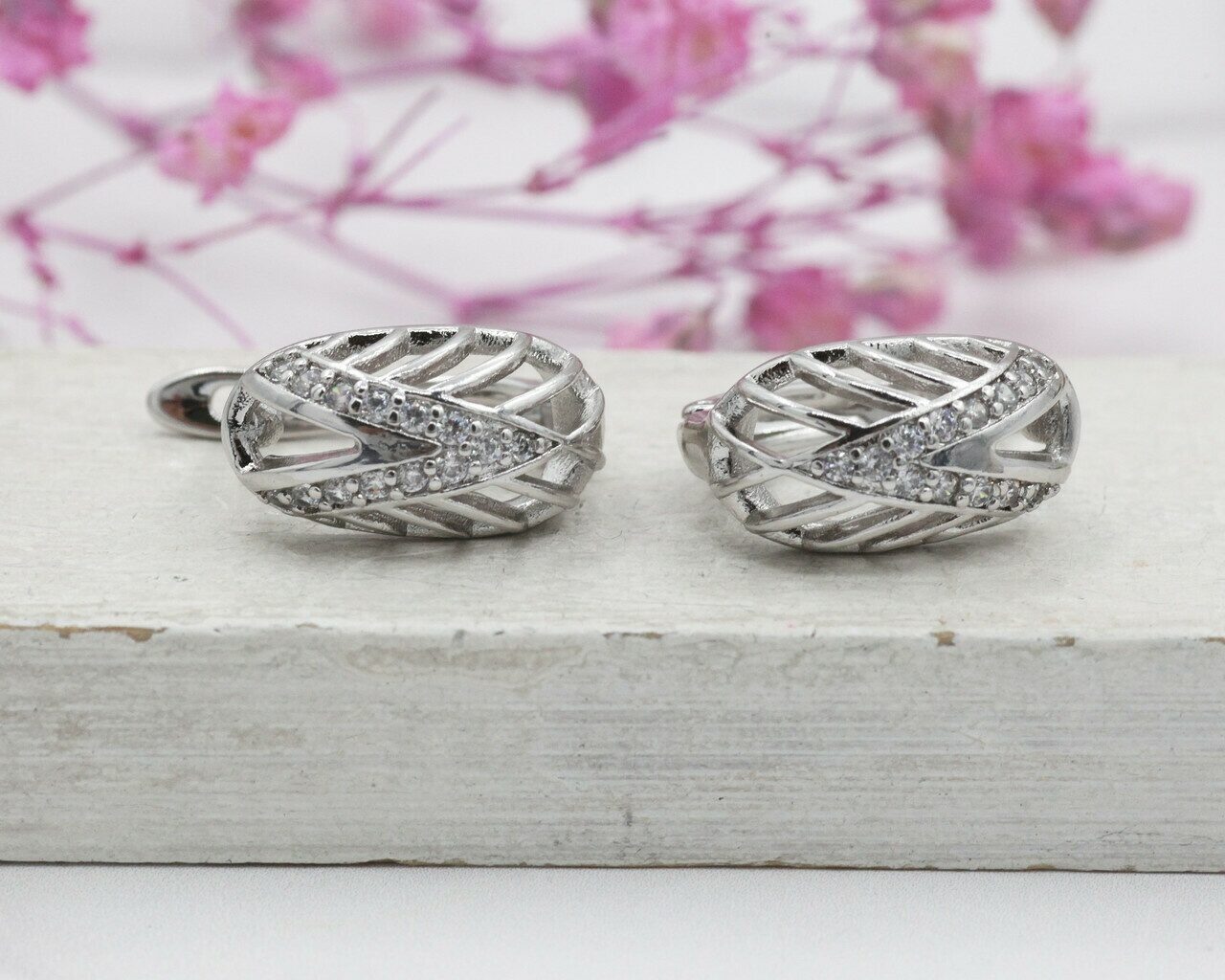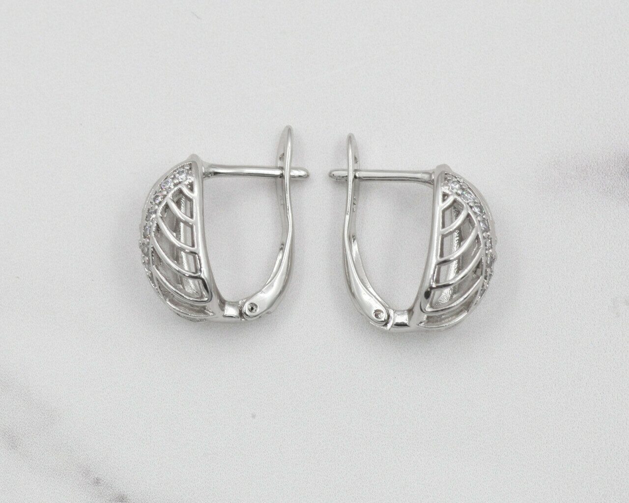 Красивые серьги с благородными цирконами изготовлены из специального гипоаллергенного ювелирного сплава, который покрыт золотом или устойчивым родиевым покрытием, предотвращающим раздражение кожных покровов. Размер сережки: 1.2 см