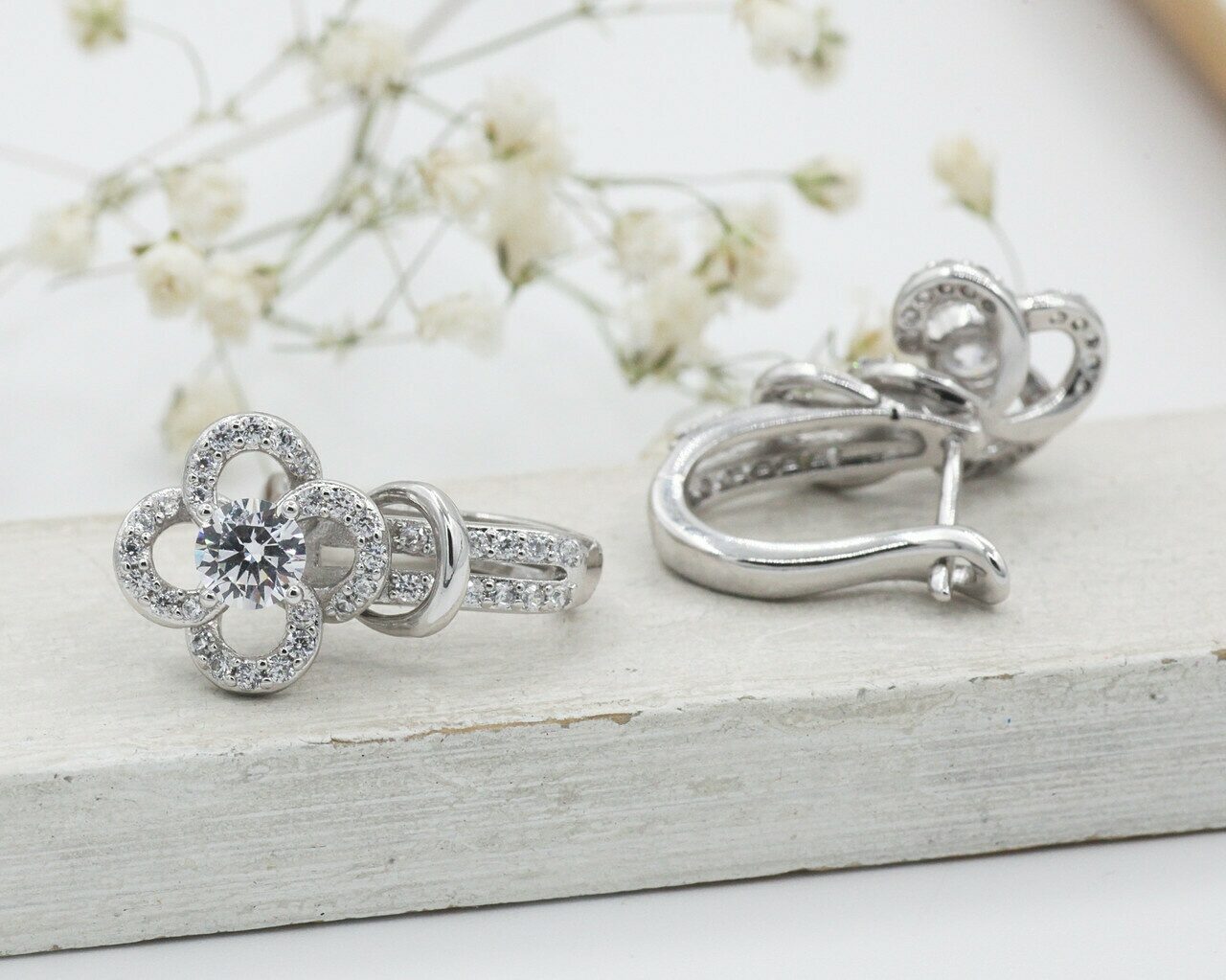 Красивые серьги с благородными цирконами изготовлены из специального гипоаллергенного ювелирного сплава, который покрыт золотом или устойчивым родиевым покрытием, предотвращающим раздражение кожных покровов. Размер сережки: 2 см