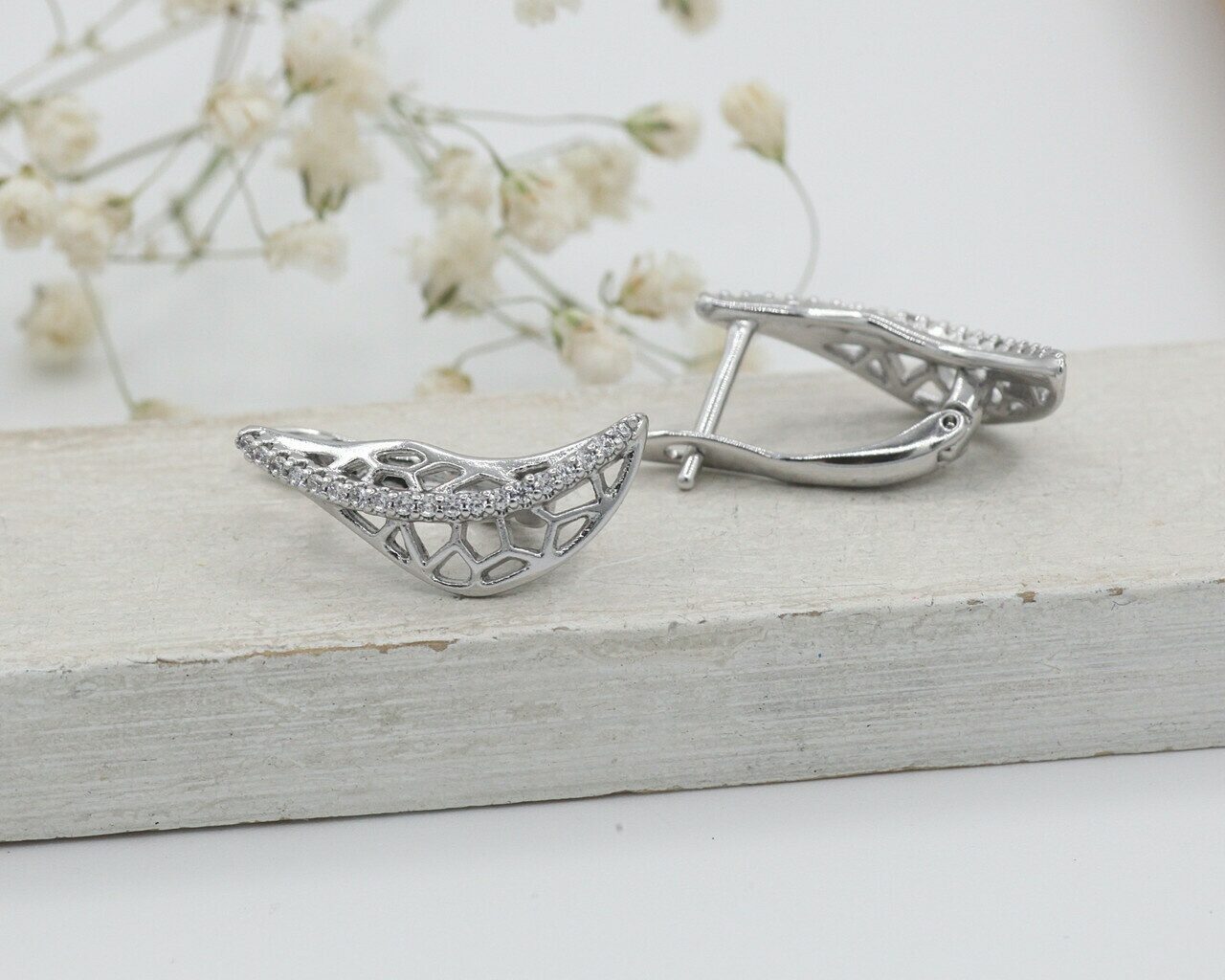 Красивые серьги с благородными цирконами изготовлены из специального гипоаллергенного ювелирного сплава, который покрыт золотом или устойчивым родиевым покрытием, предотвращающим раздражение кожных покровов. Размер сережки: 2 см