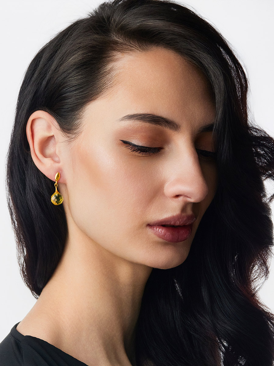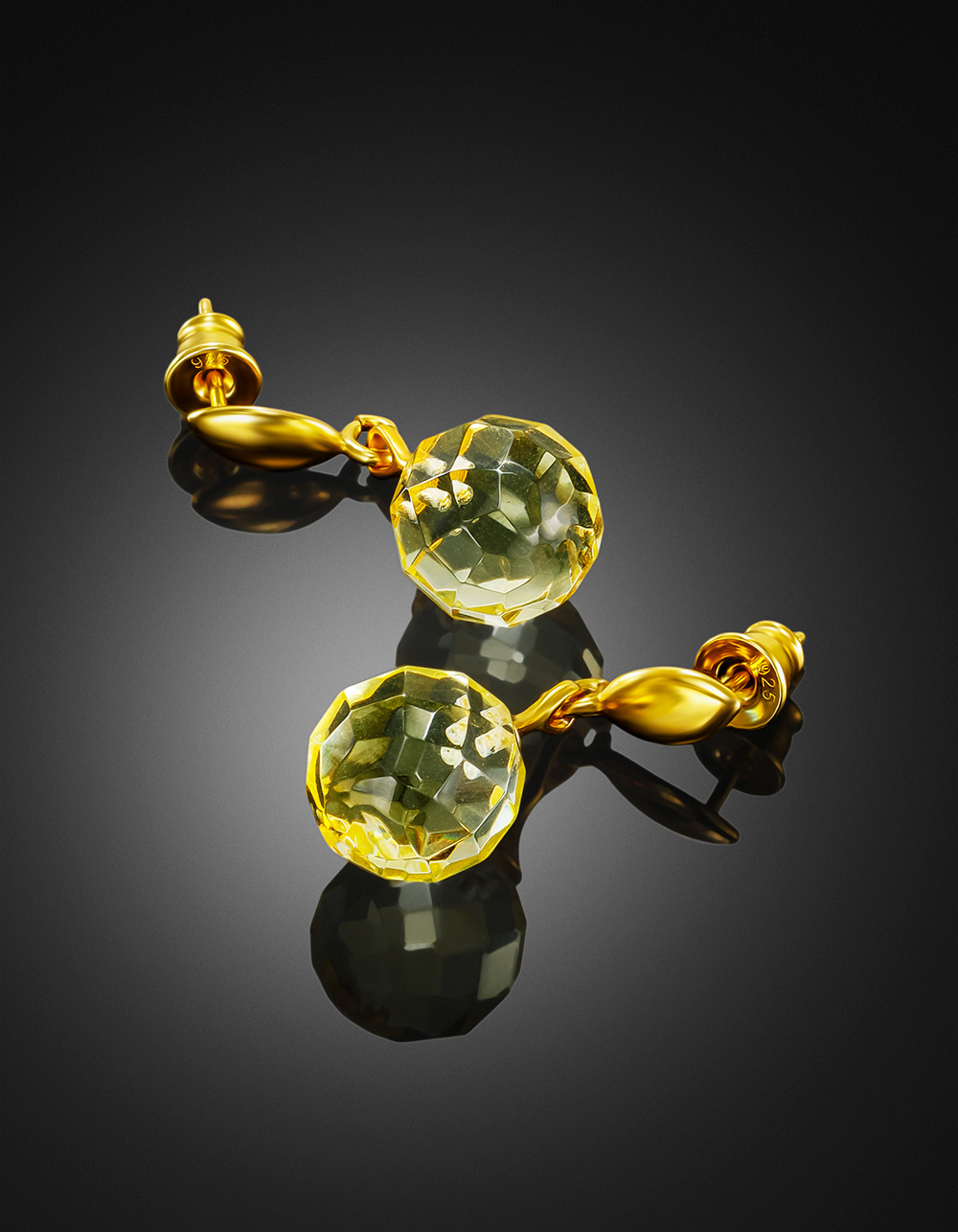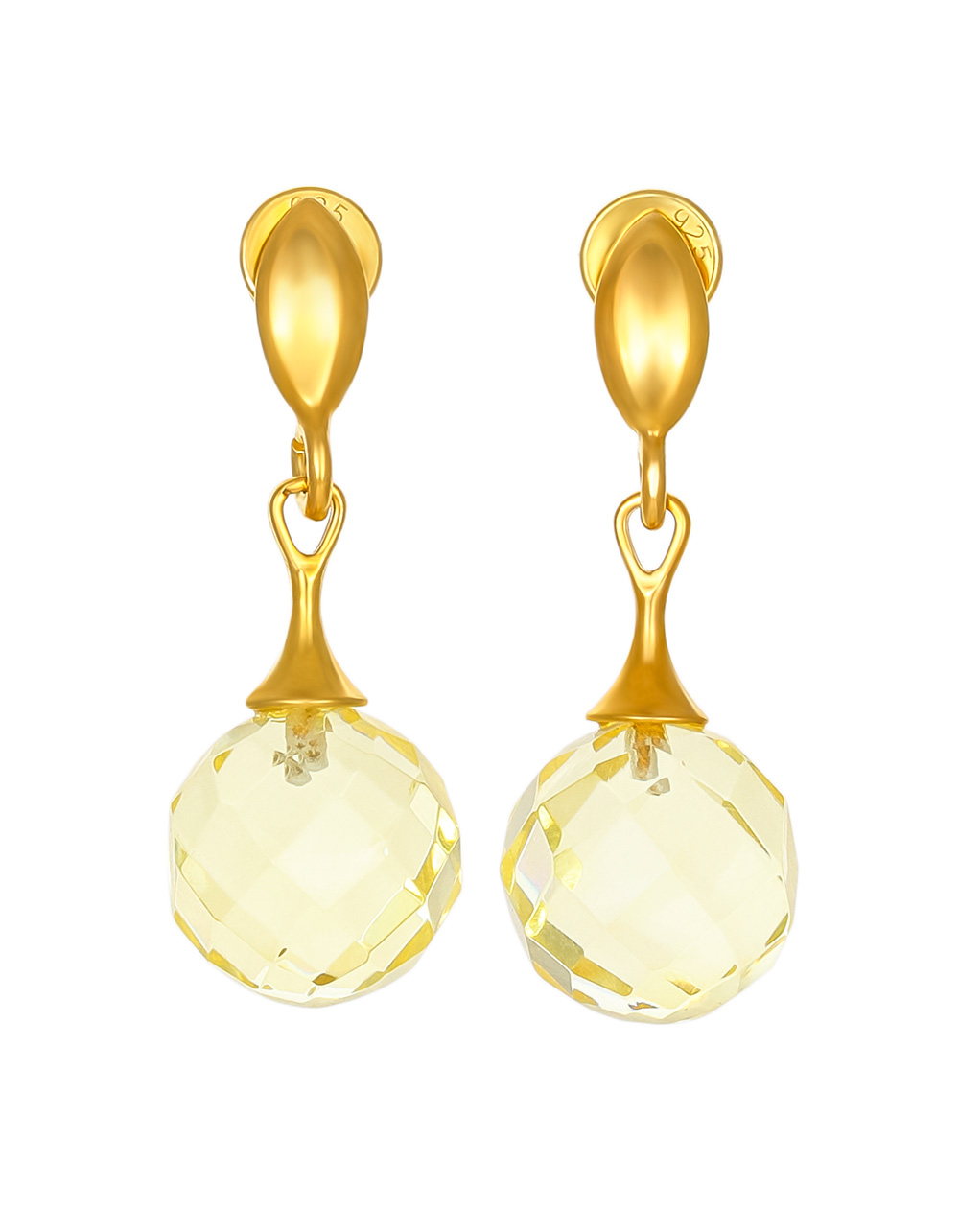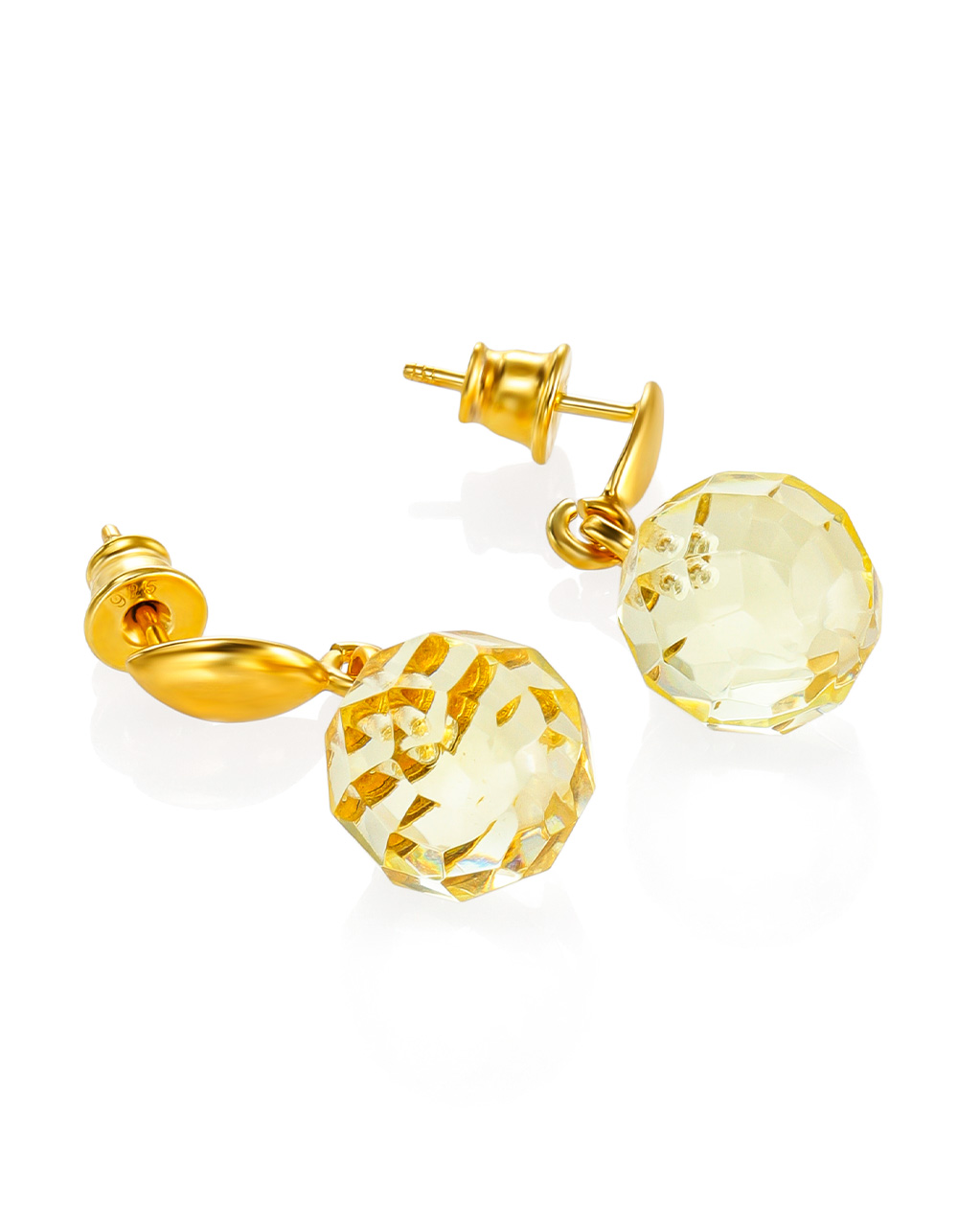 Серьги-гвоздики «Баккара» с гранёными янтарными подвесками-шариками
