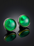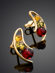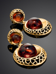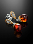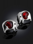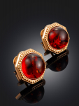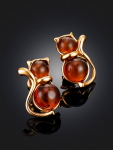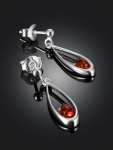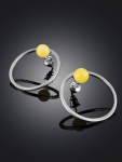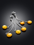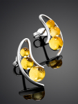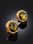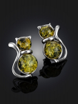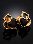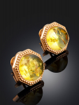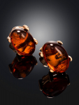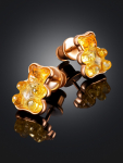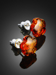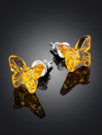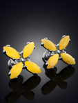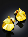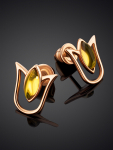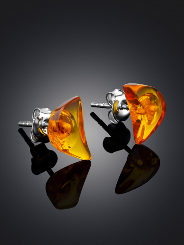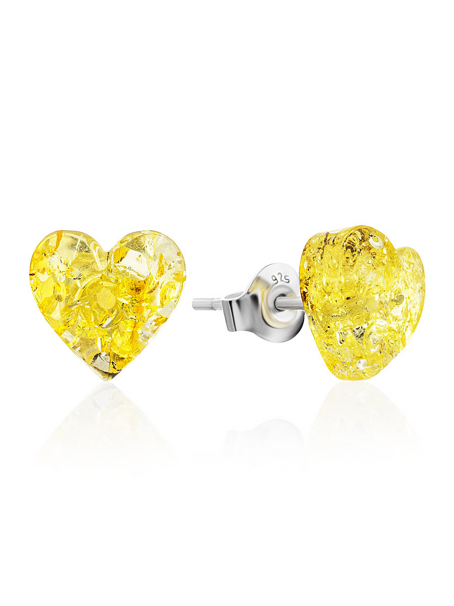 Серьги-гвоздики из натурального янтаря «Сердца лимонные искрящиеся»