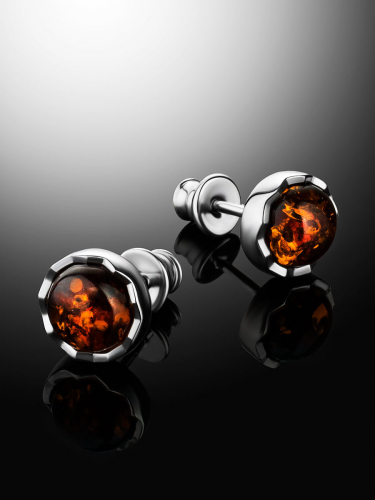 Серьги-гвоздики из нежно-лимонного янтаря «Камелот»