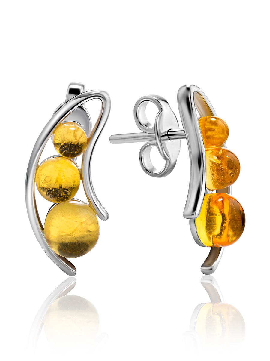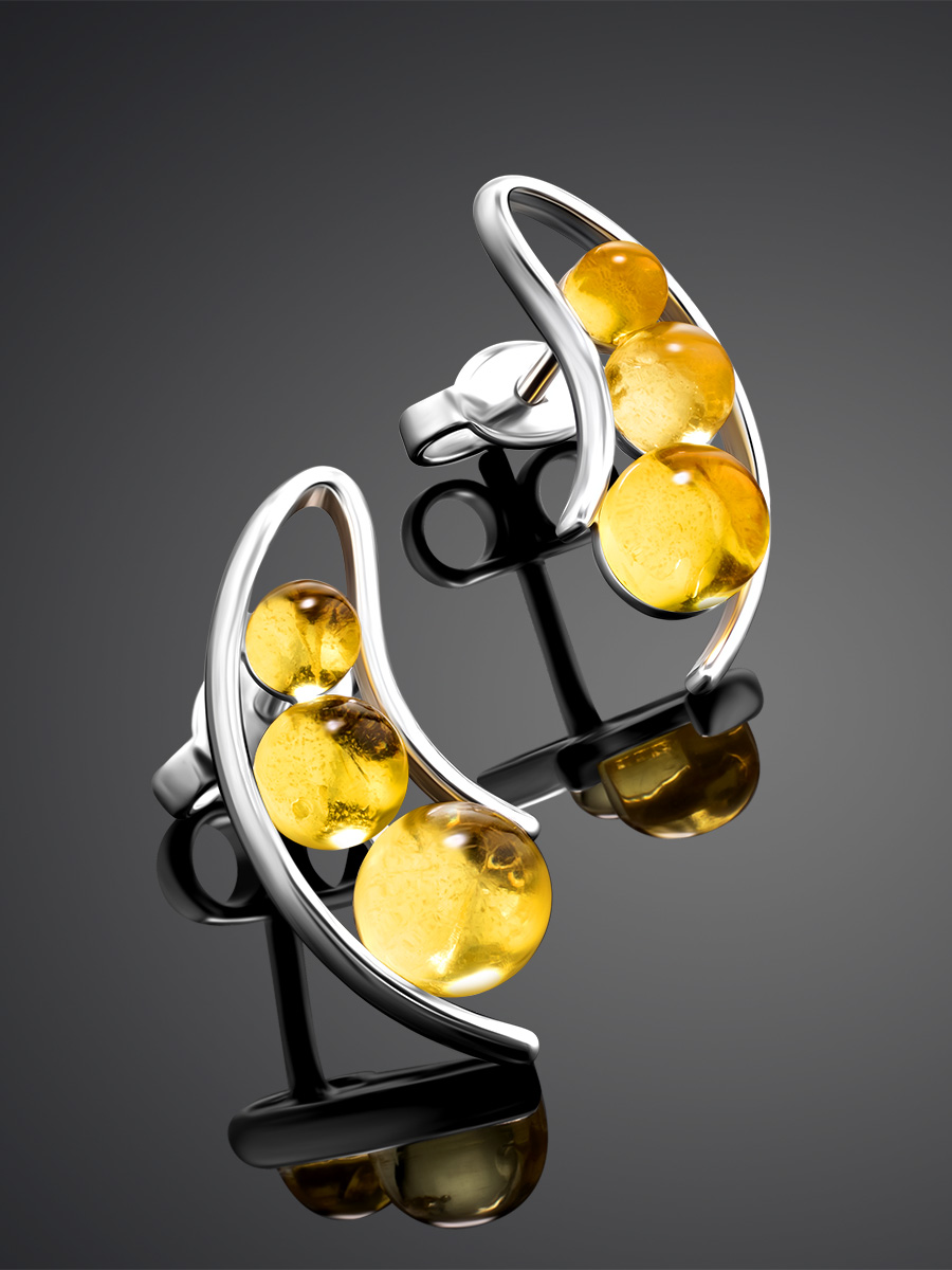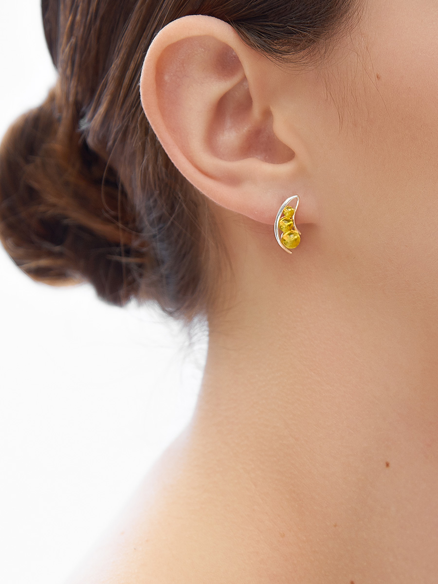 Серьги-гвоздики из ярко-лимонного янтаря «Горошек»